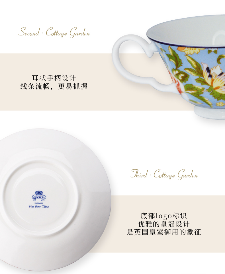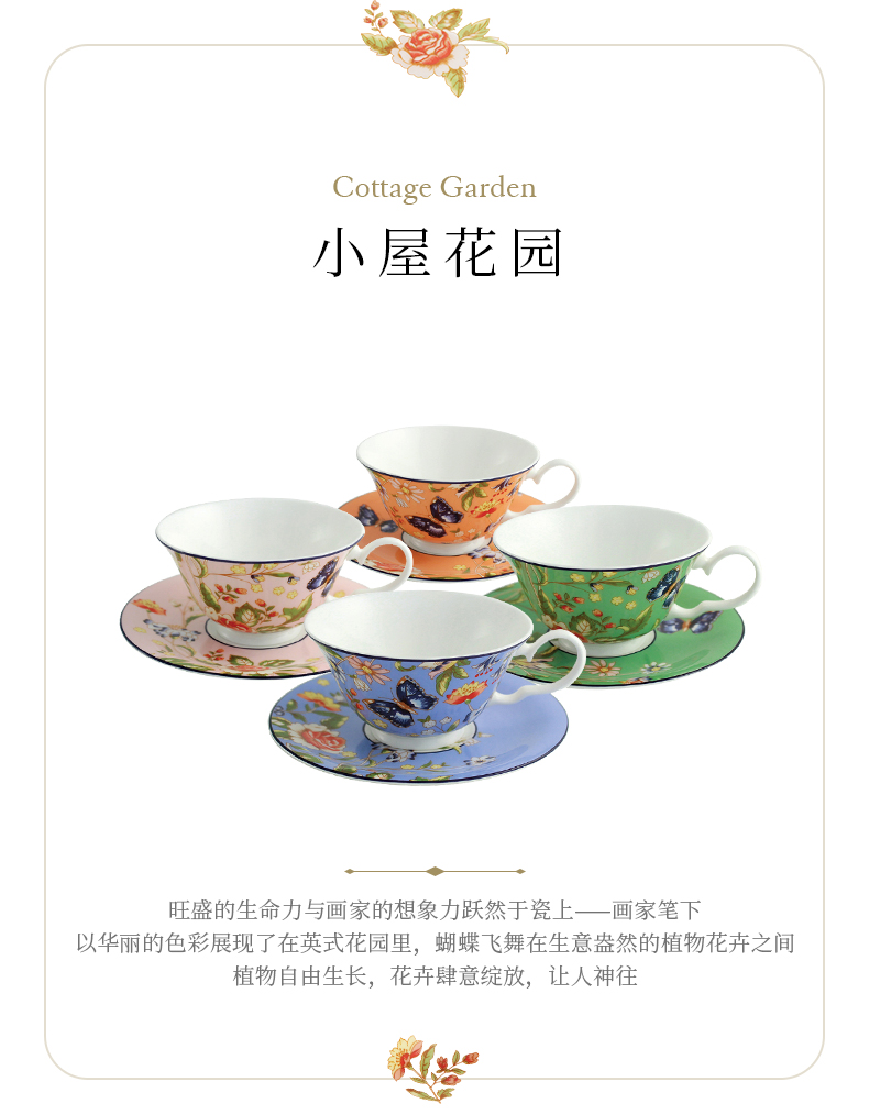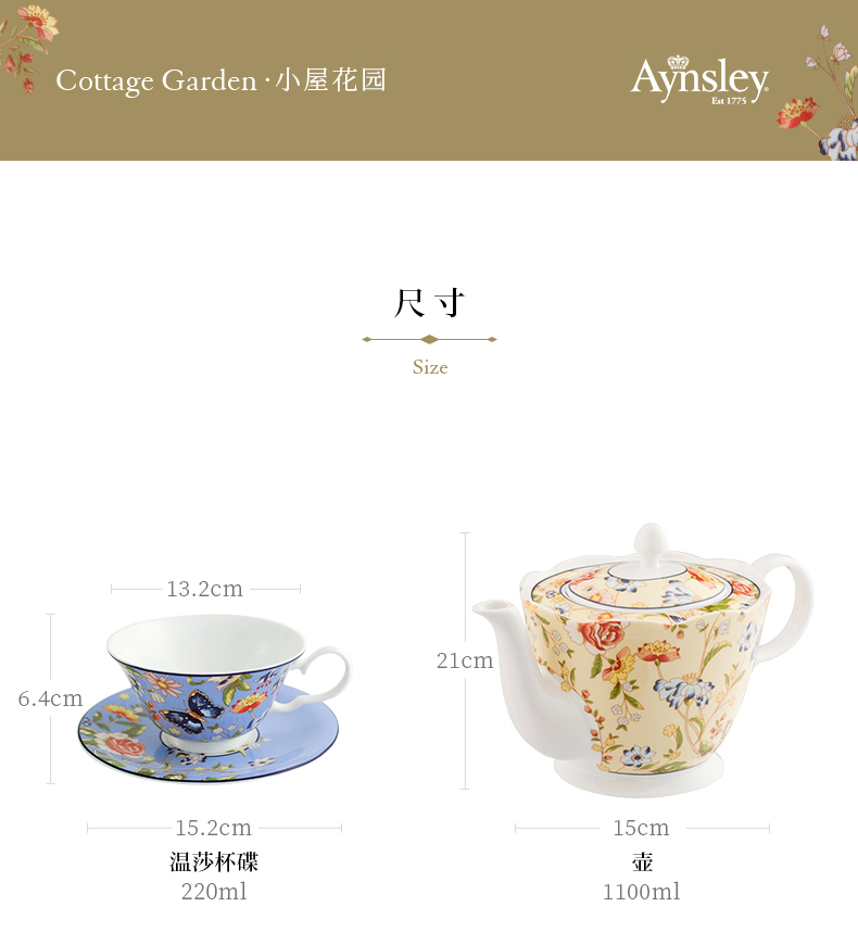 【清仓特惠7折,仅1套,无货退款】英国Aynsley安斯丽小屋花园温莎英式骨瓷下午茶茶具杯子咖啡杯碟