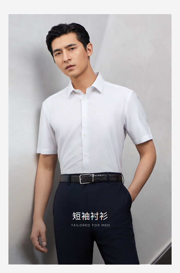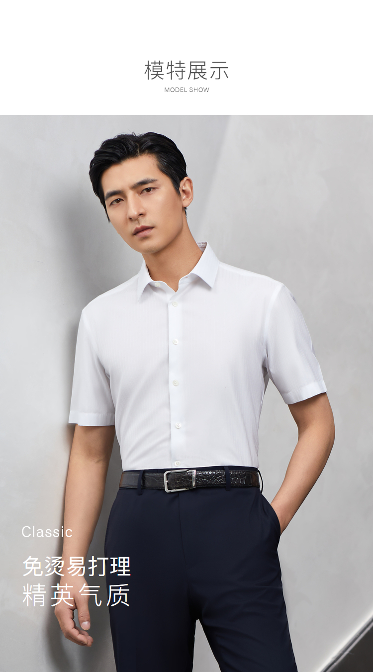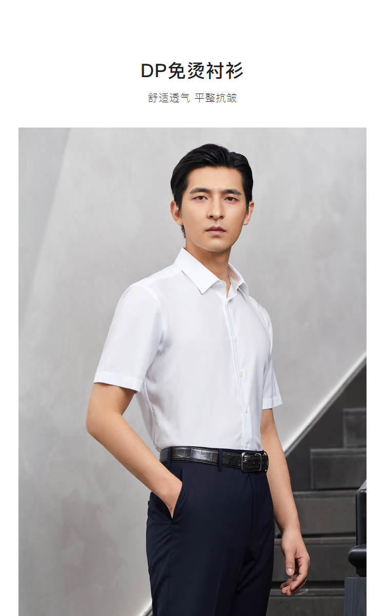 雅戈尔男士短袖衬衫春季新款商务休闲免烫衬衫YST180505BBA
