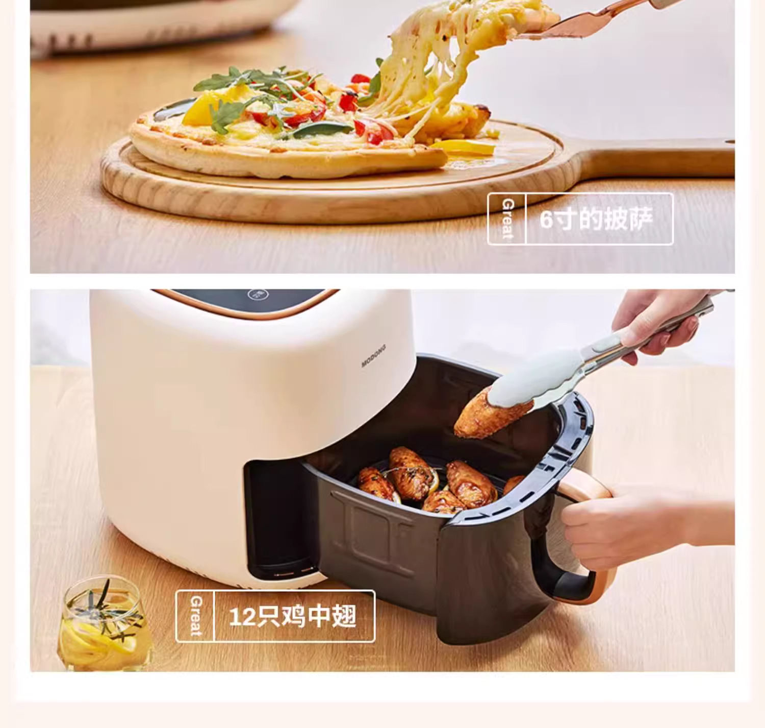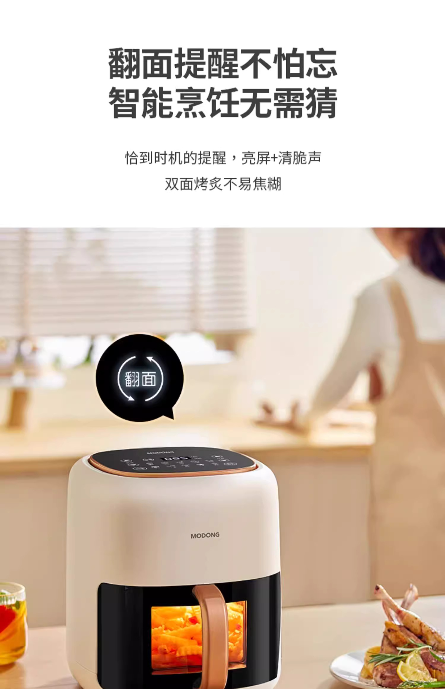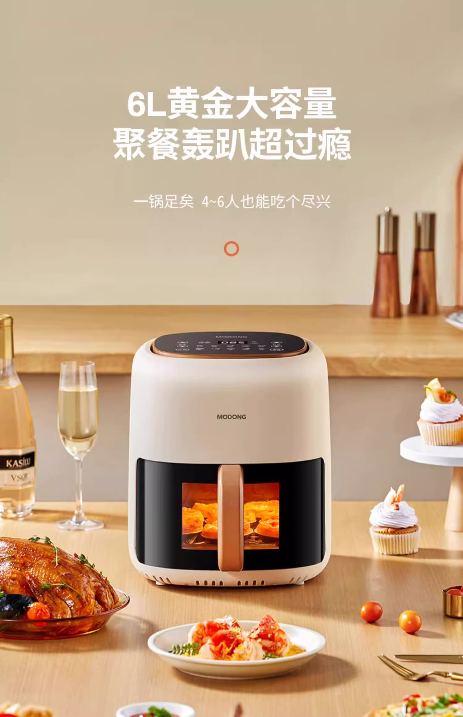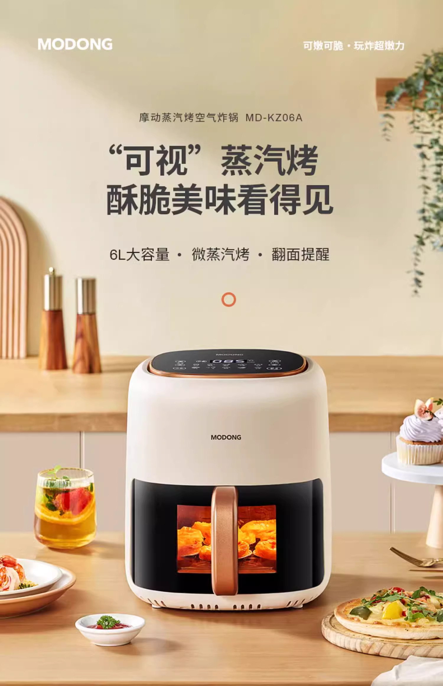摩动可视空气炸锅家用电炸锅多功能一体6L大容量智能薯条机电烤箱MD-KZ06A