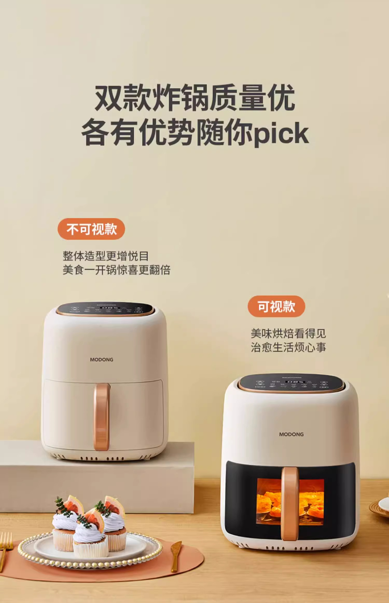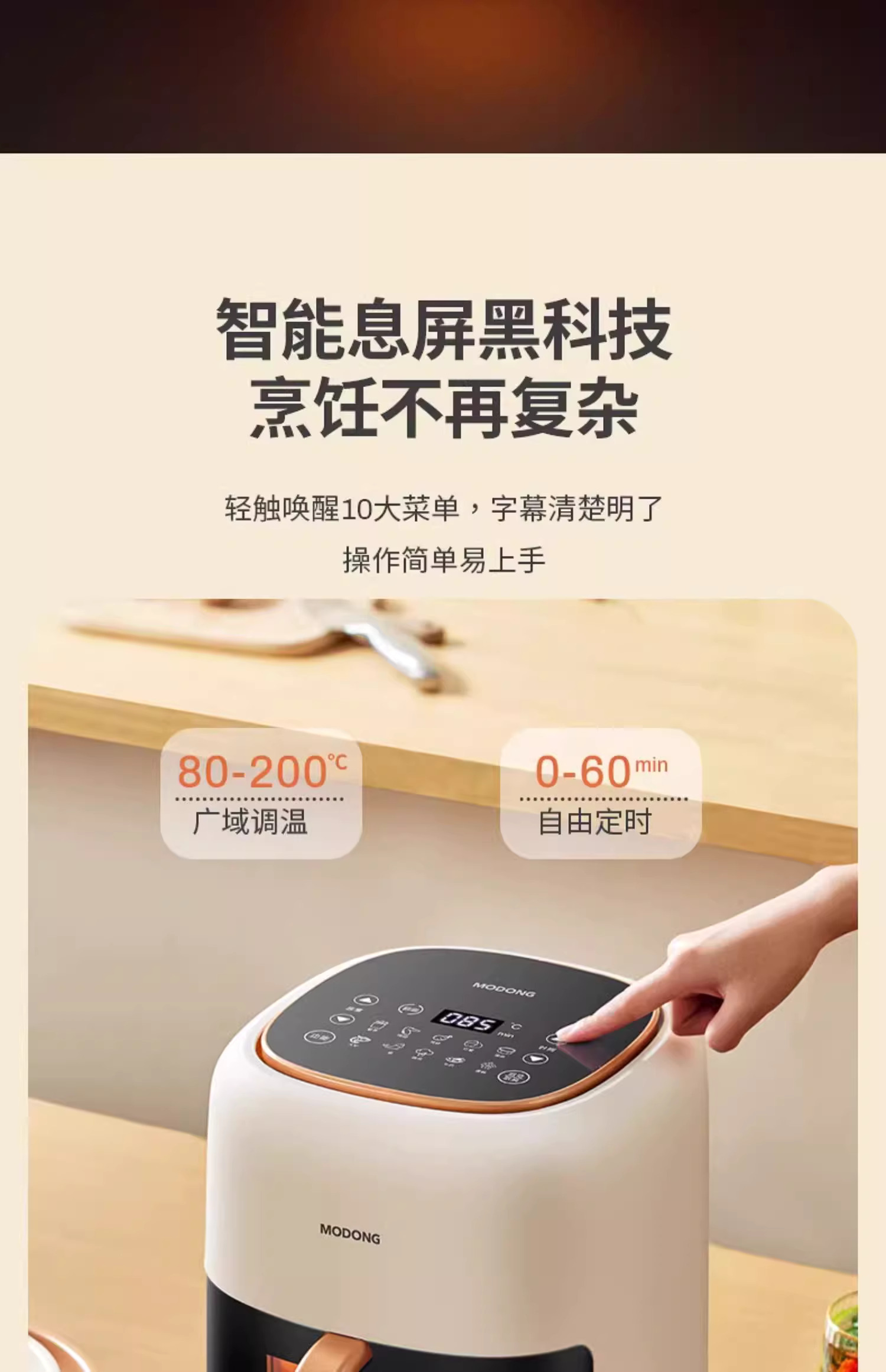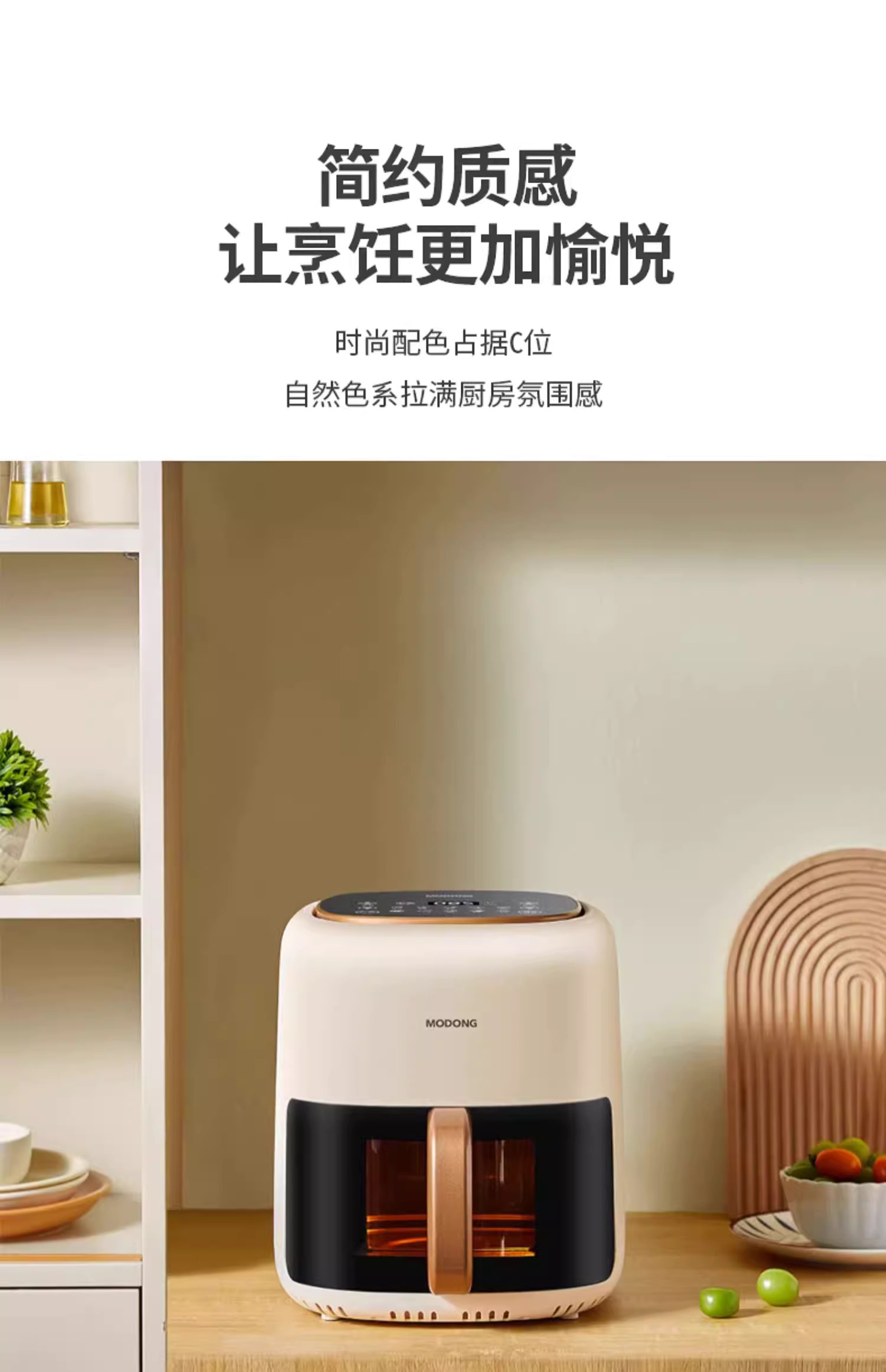 摩动可视空气炸锅家用电炸锅多功能一体6L大容量智能薯条机电烤箱MD-KZ06A