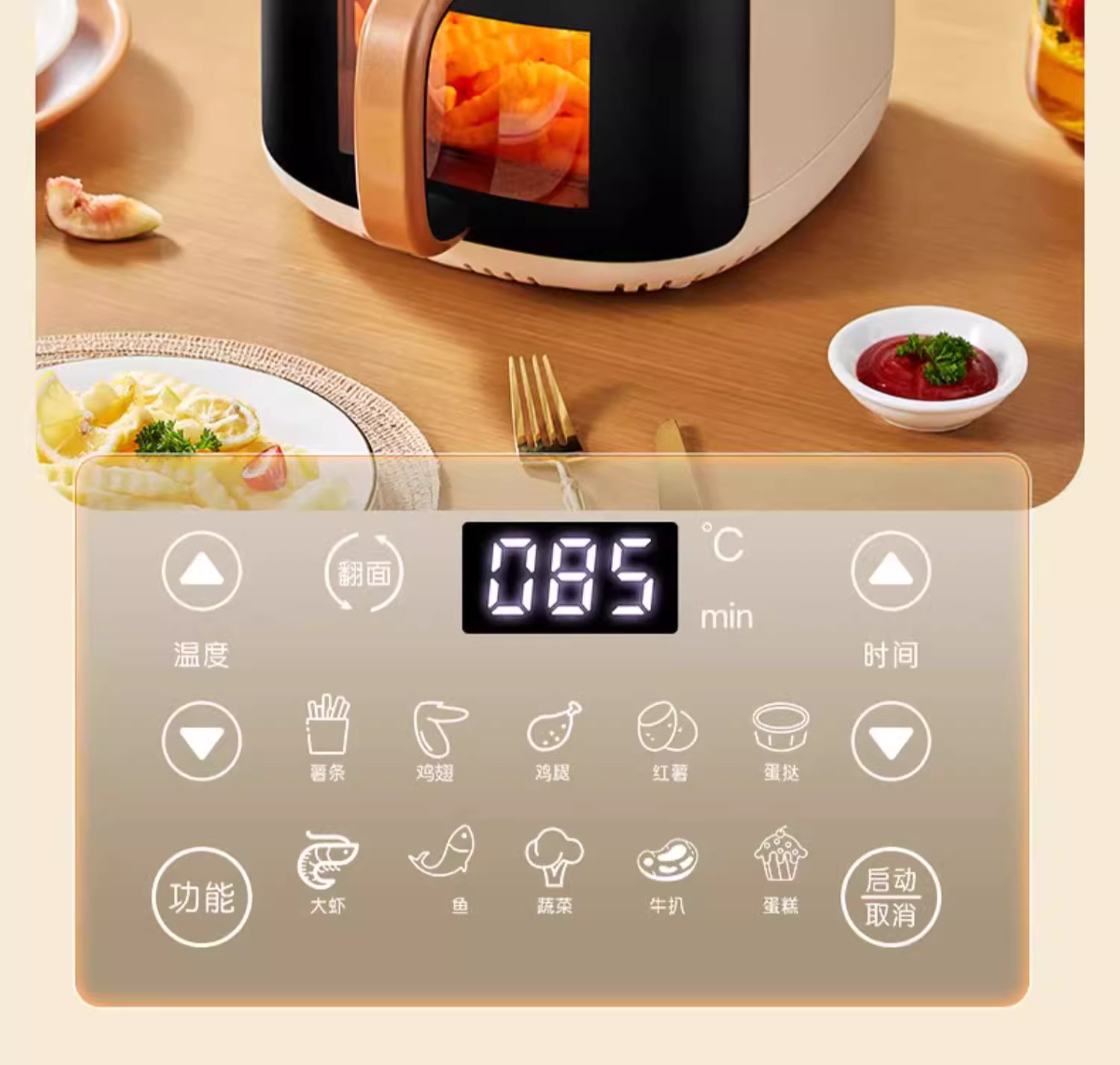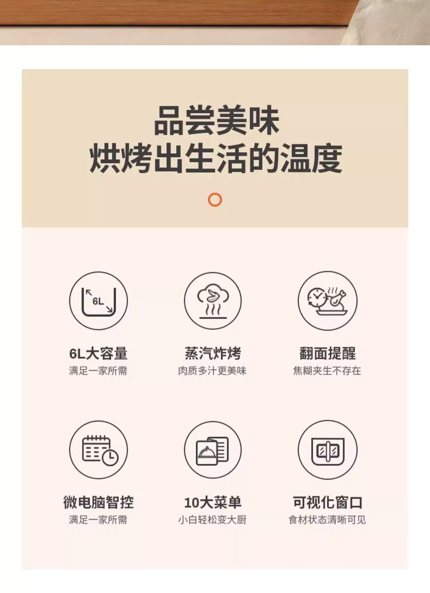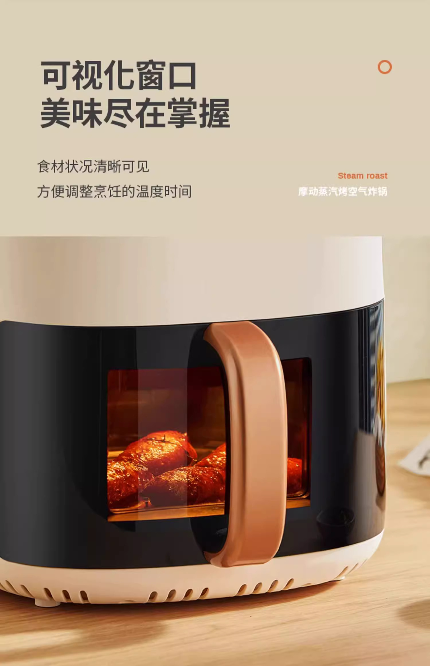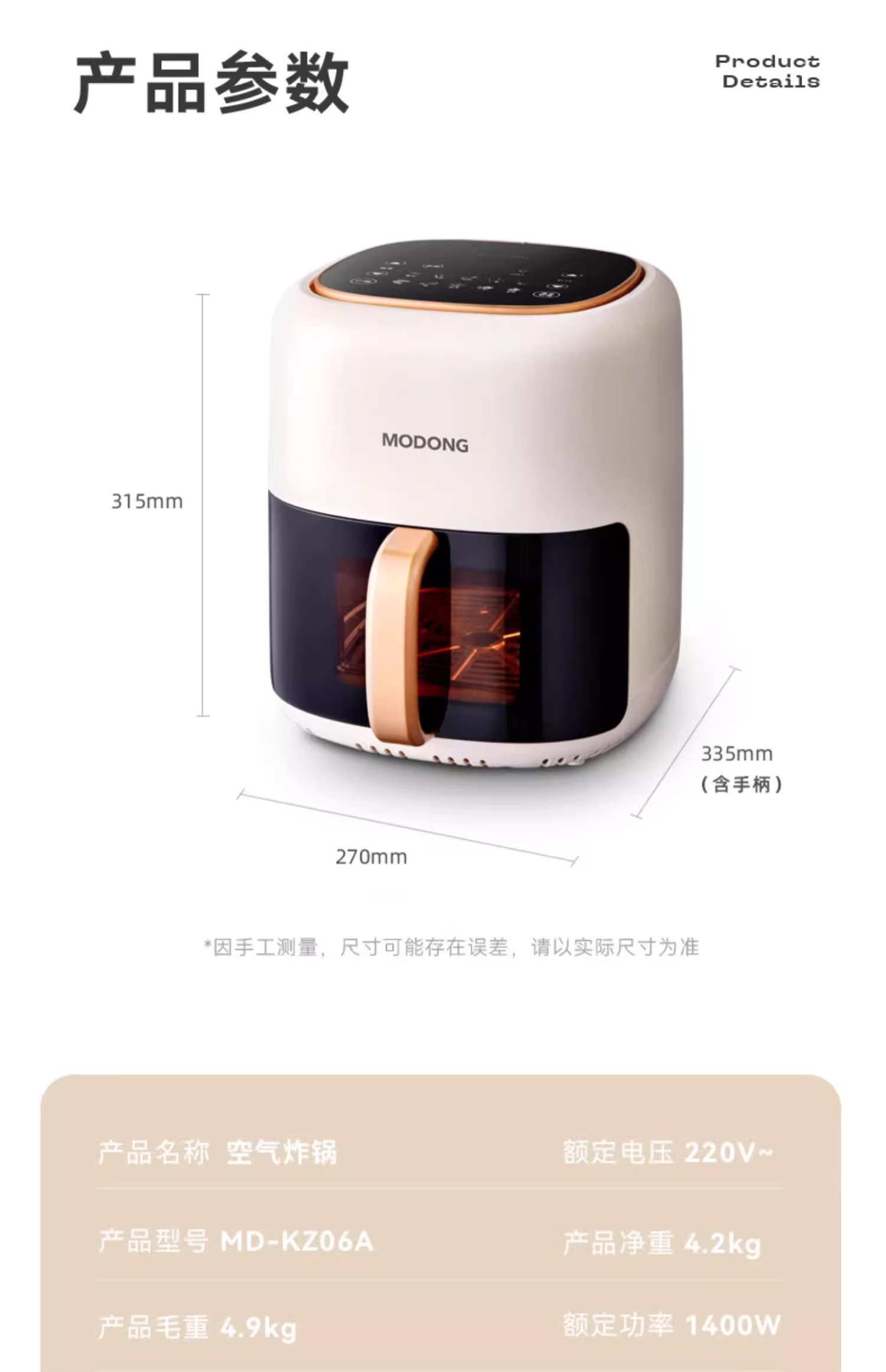 摩动可视空气炸锅家用电炸锅多功能一体6L大容量智能薯条机电烤箱MD-KZ06A