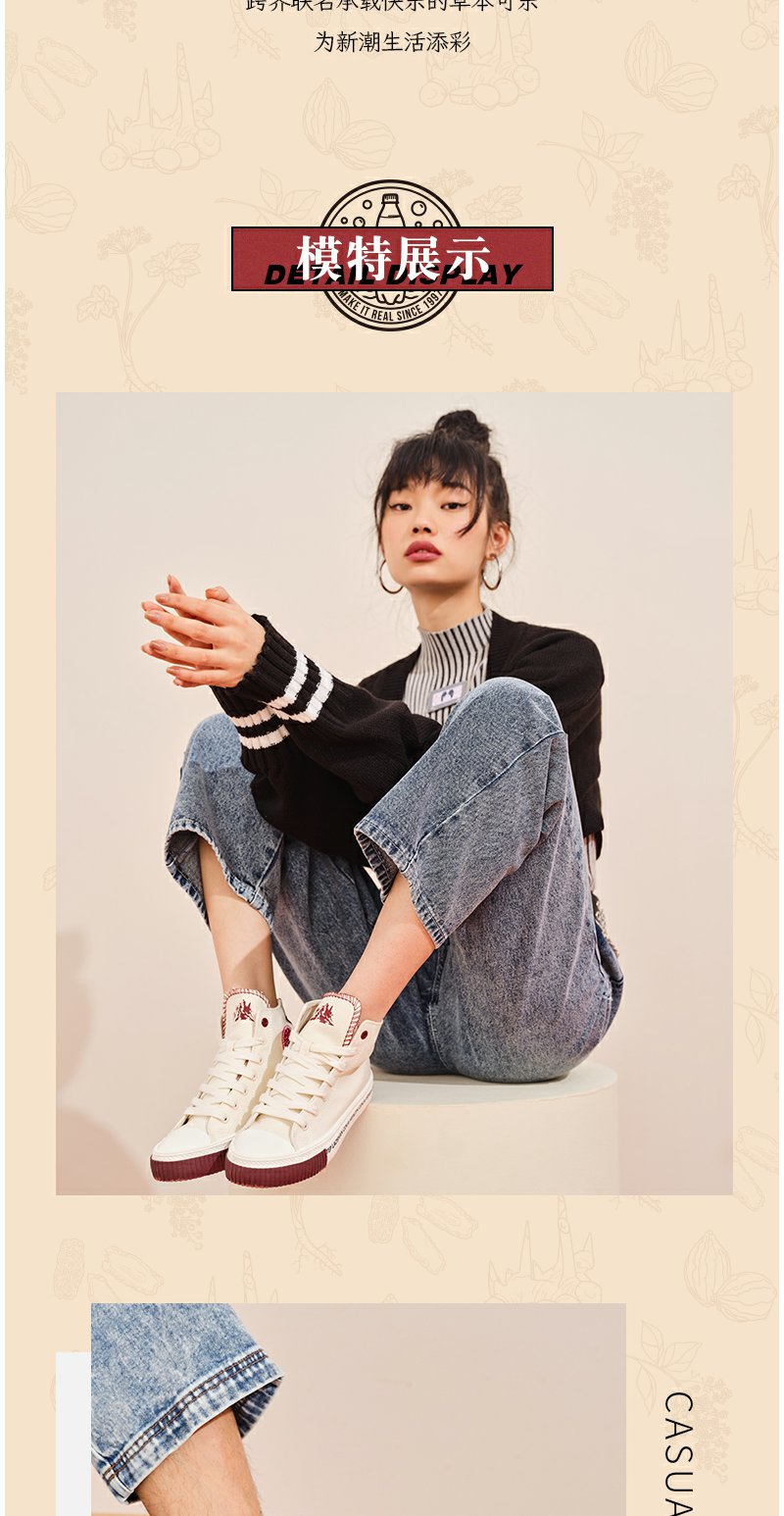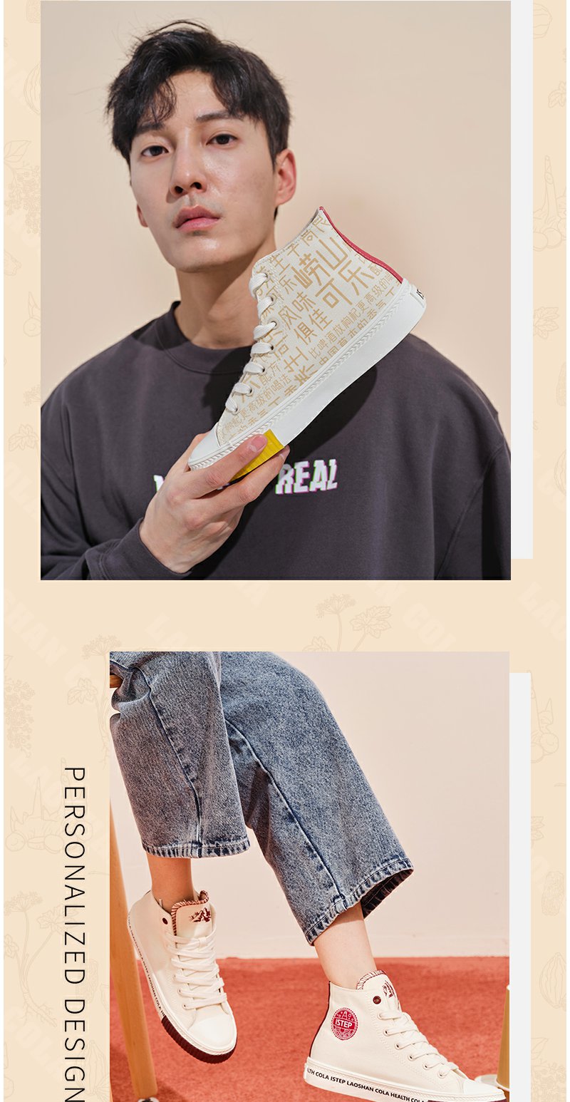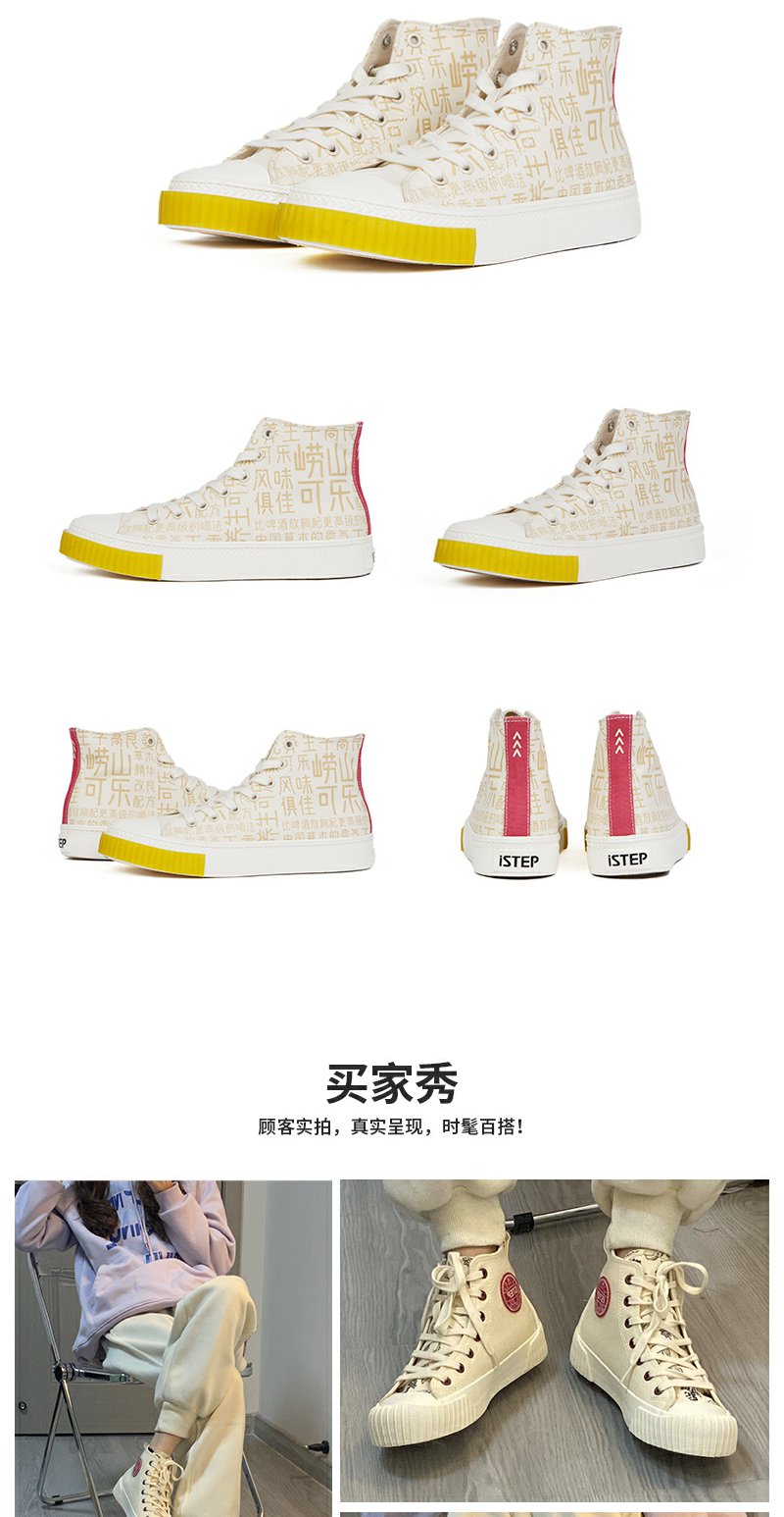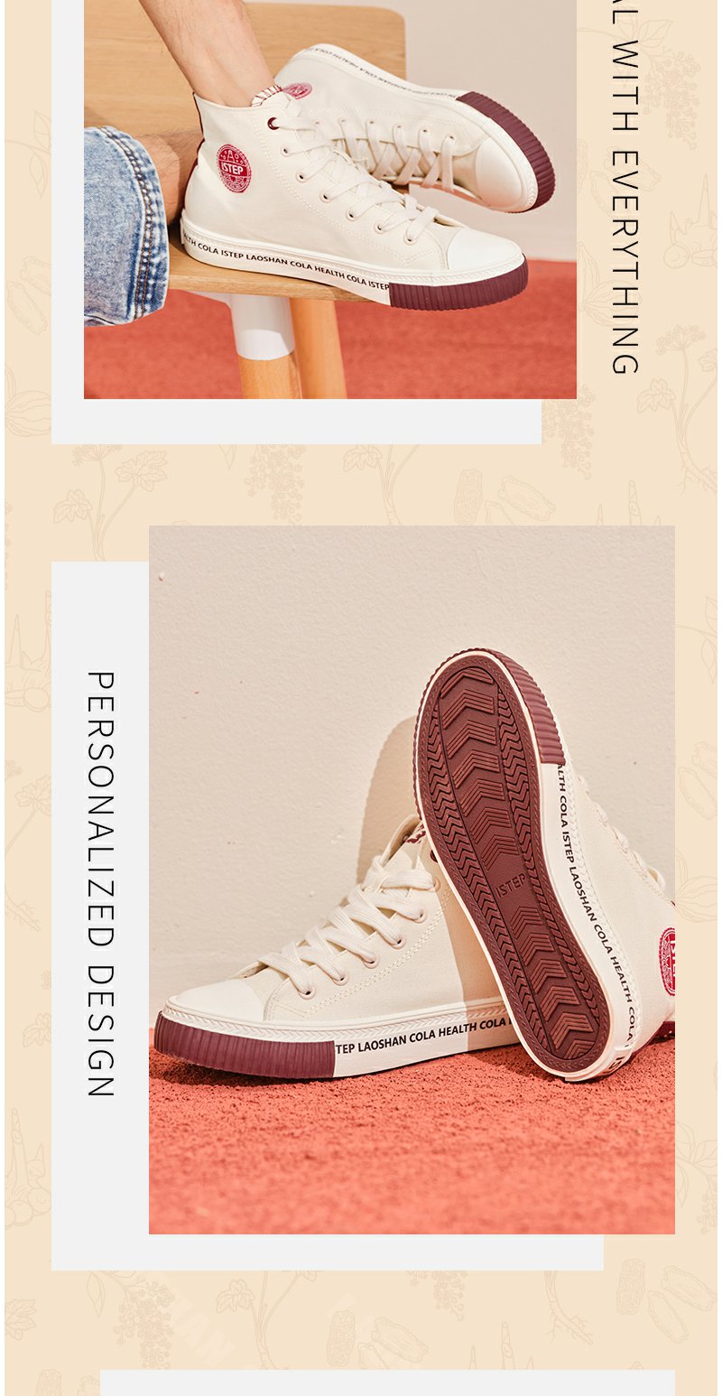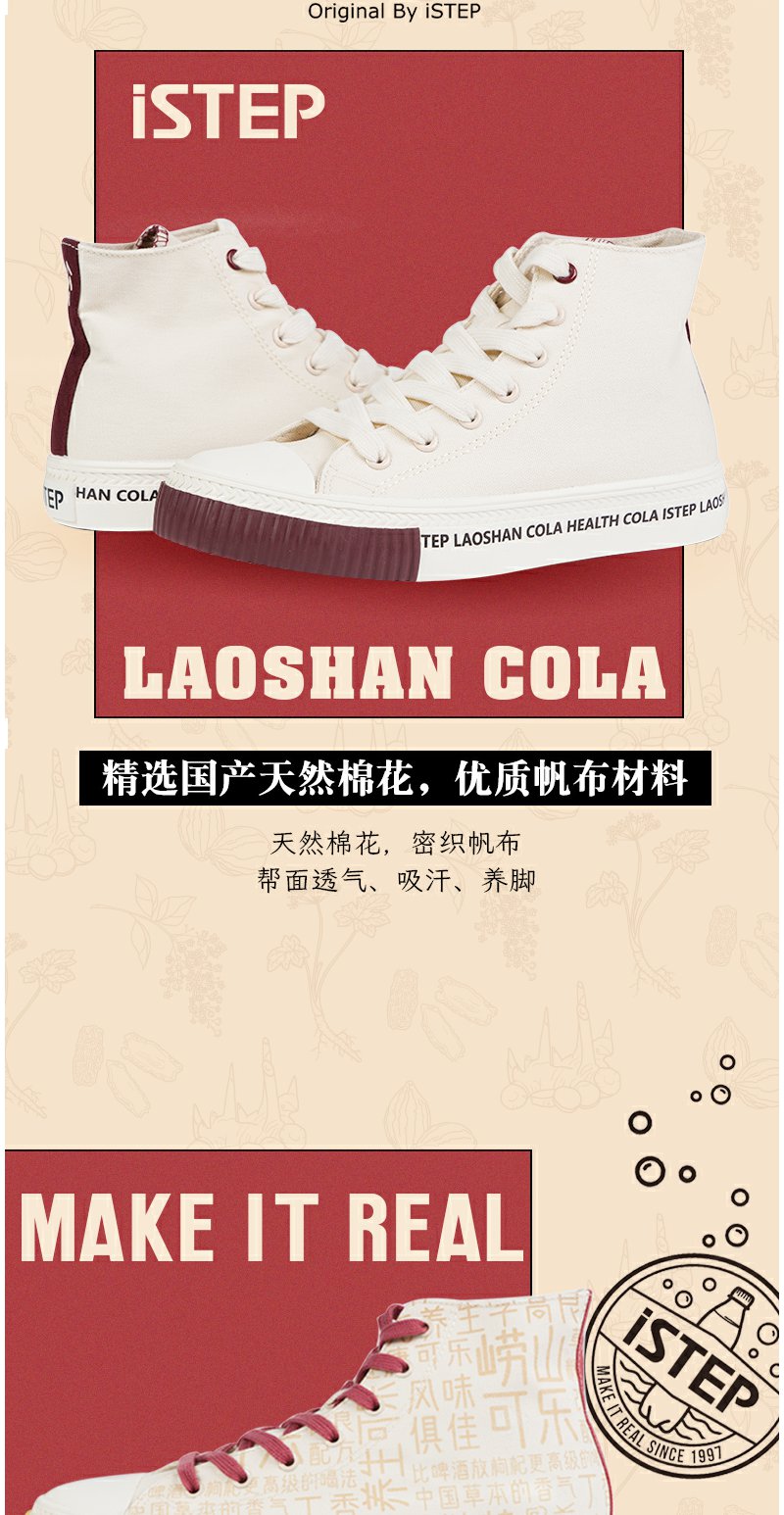 istep帆布鞋女崂山可乐联名款鞋子小白鞋高帮情侣款板鞋休闲