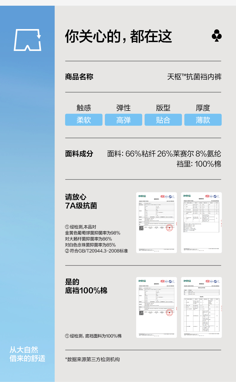 【新品上新】 有棵树10A抗菌纯棉全棉裆中腰女士三角裤3条装-U3261