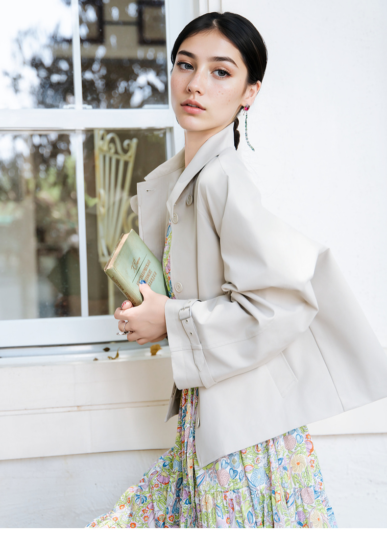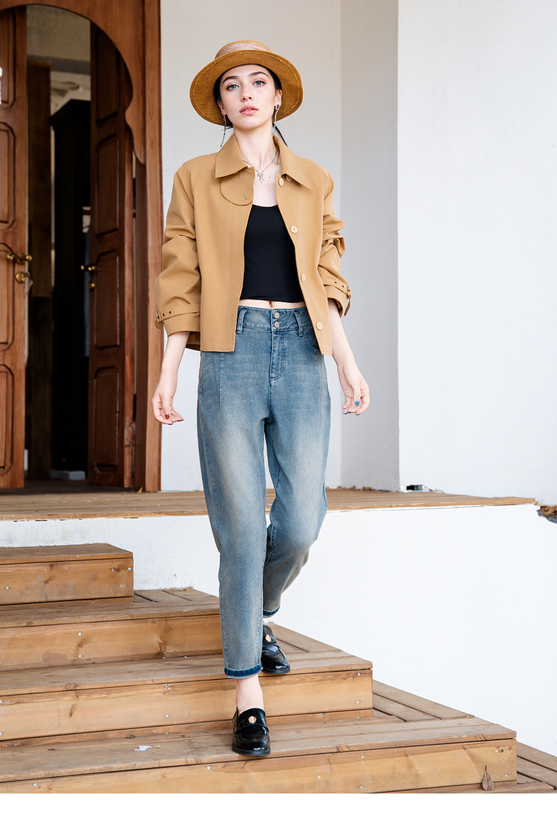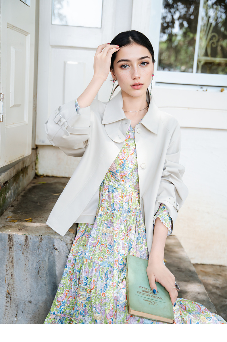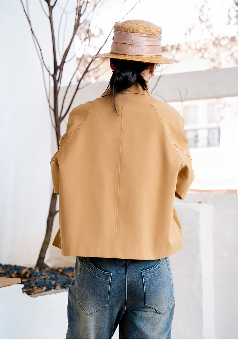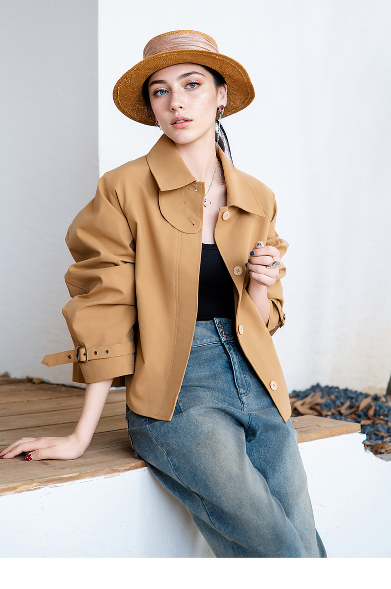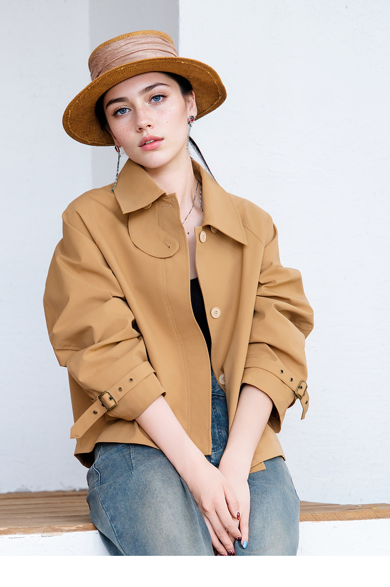 谜底翻领短款风衣外套女2025秋季新款通勤风设计感外套257MW7837