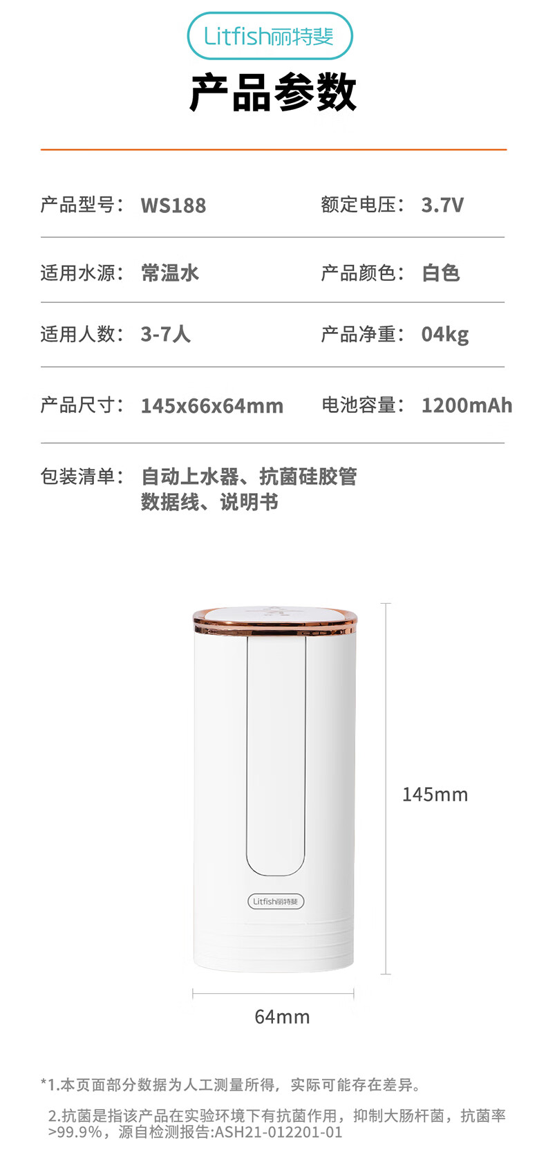 【小家电】丽特斐抽水器桶装水电动压水器饮水机大桶水取水器矿泉水出水器 WS-188 HF