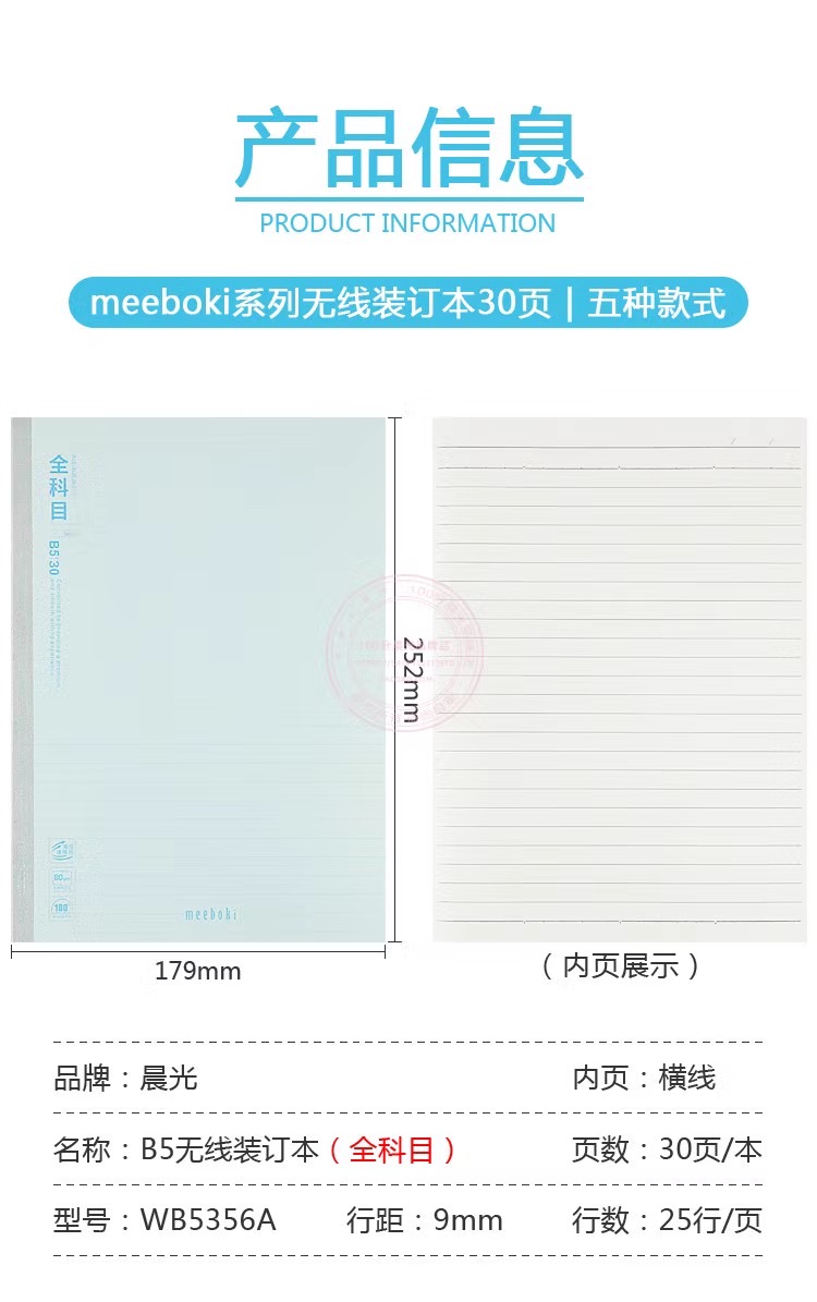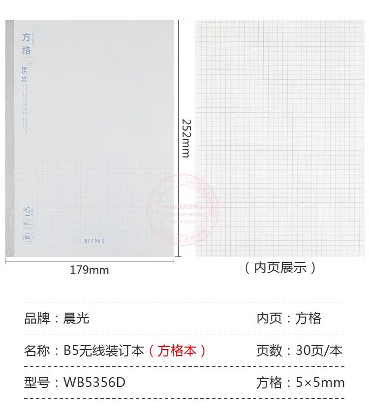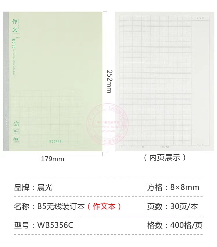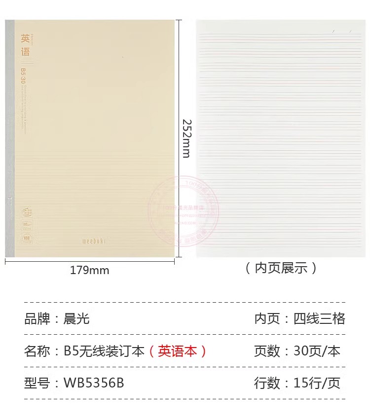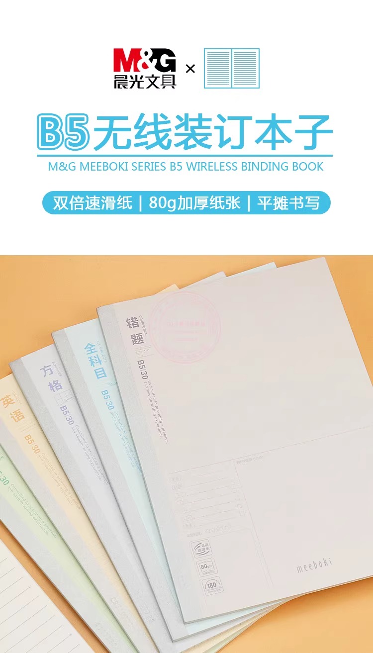 WB5356B晨光MEEBOKIB5无线装订本30页 学生全科目英语作文方格错题笔记本