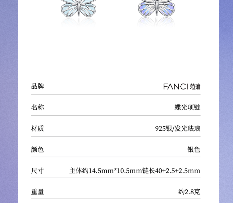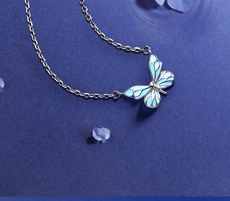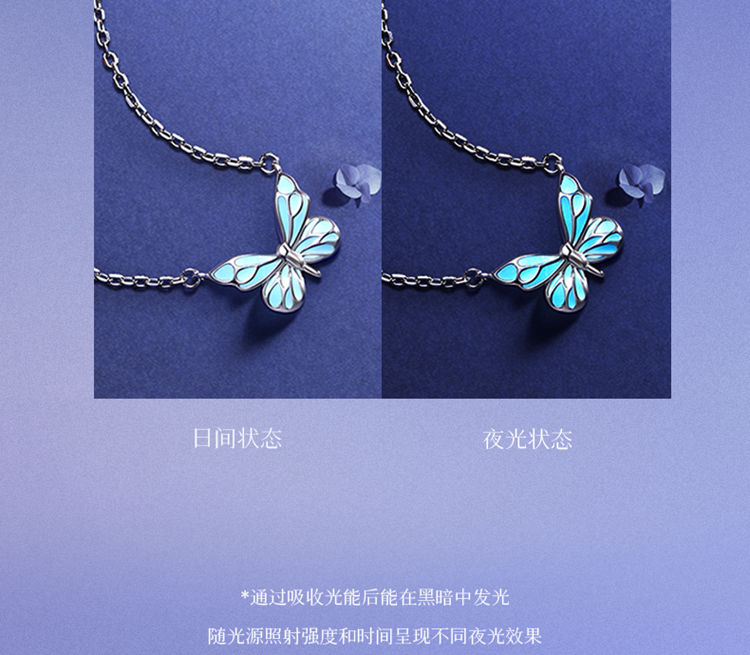 Fanci范琦 蝶光项链女发光蝴蝶银饰小众原创生日送闺蜜闪蝶手链纪念日女朋友礼物