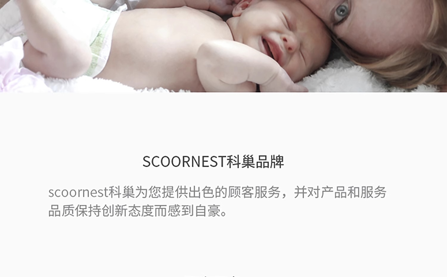 - Scoornest始终秉承给每一位宝宝送去科学的、关心的、创新的成长体验,通过提供商品和服务,使顾客形成守护、发展、巩固这种弥足珍贵的亲情的爱。