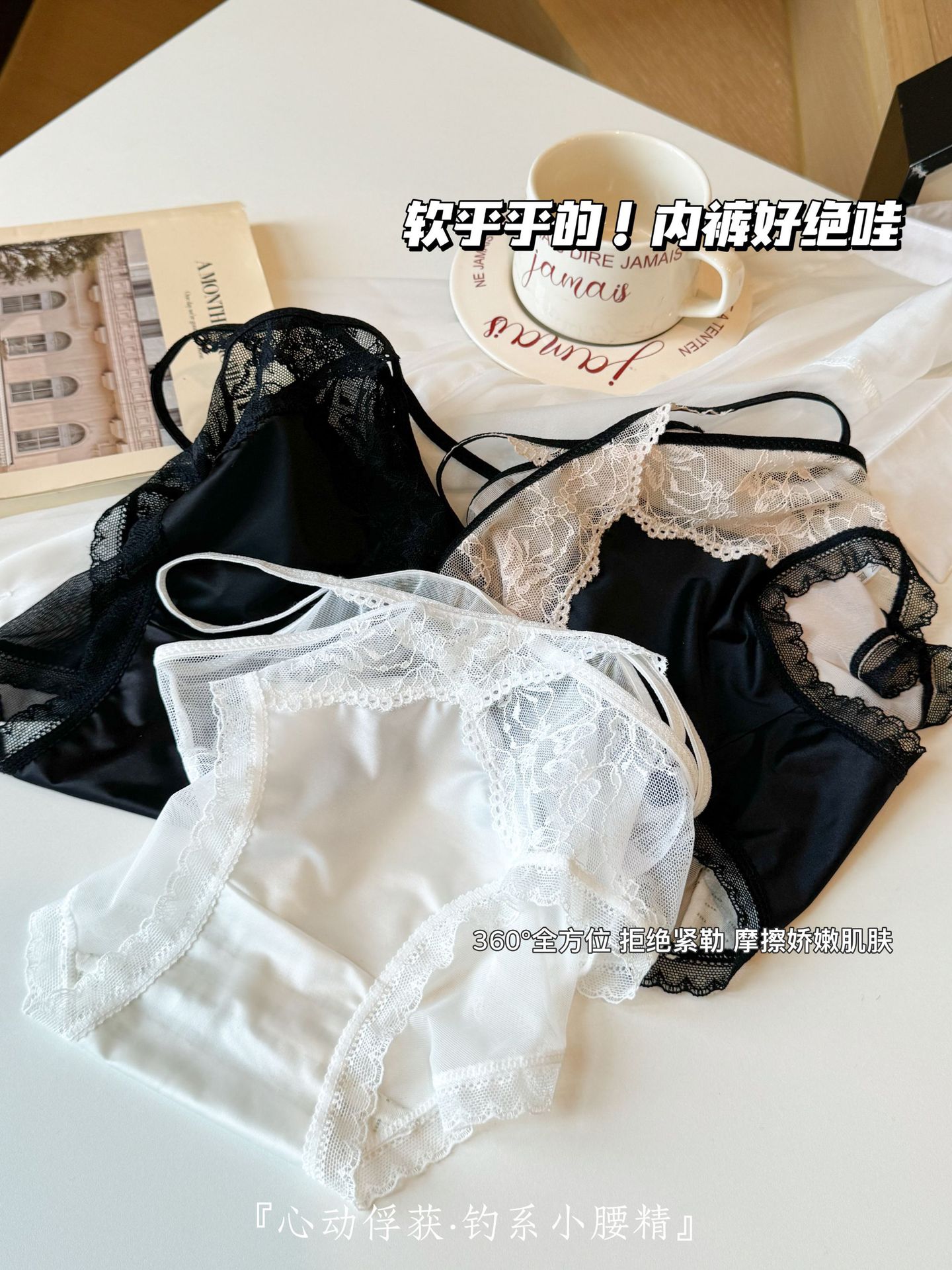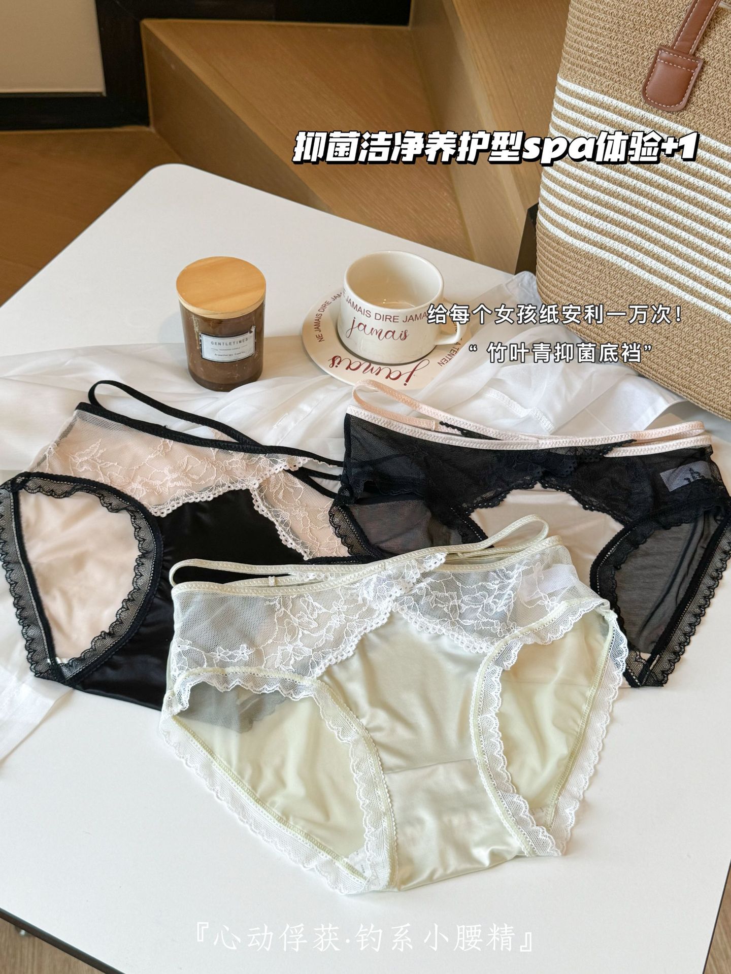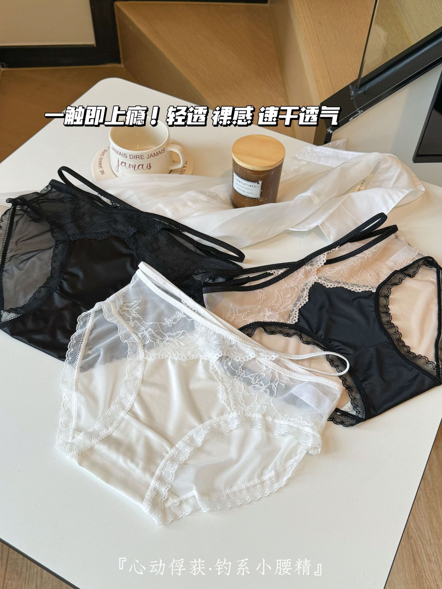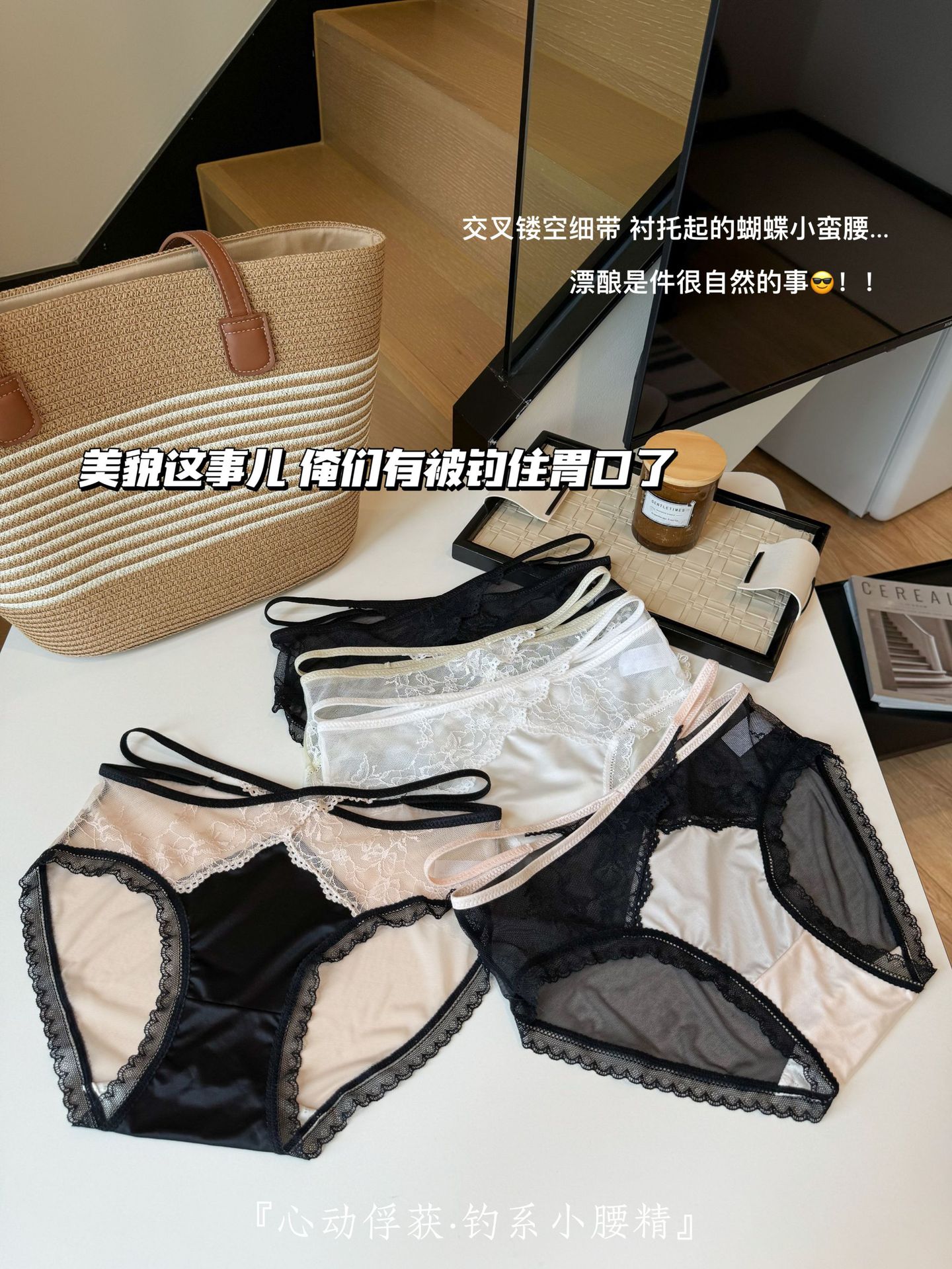 【到手3件!心动小妖精!】新款小妖精轻透蕾丝珠光性感内裤 空交叉丝带柔软触感可盐可甜展现腰线内裤