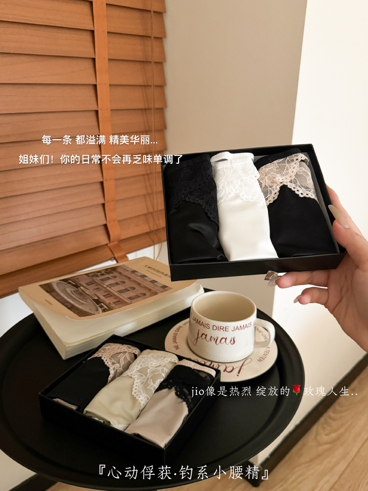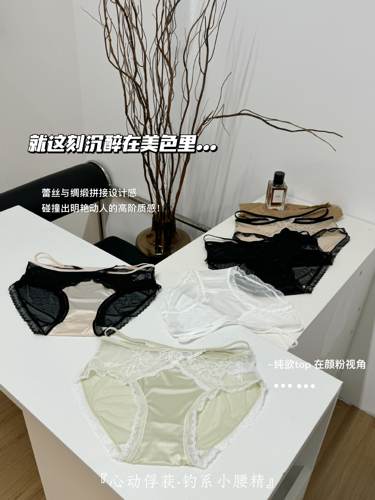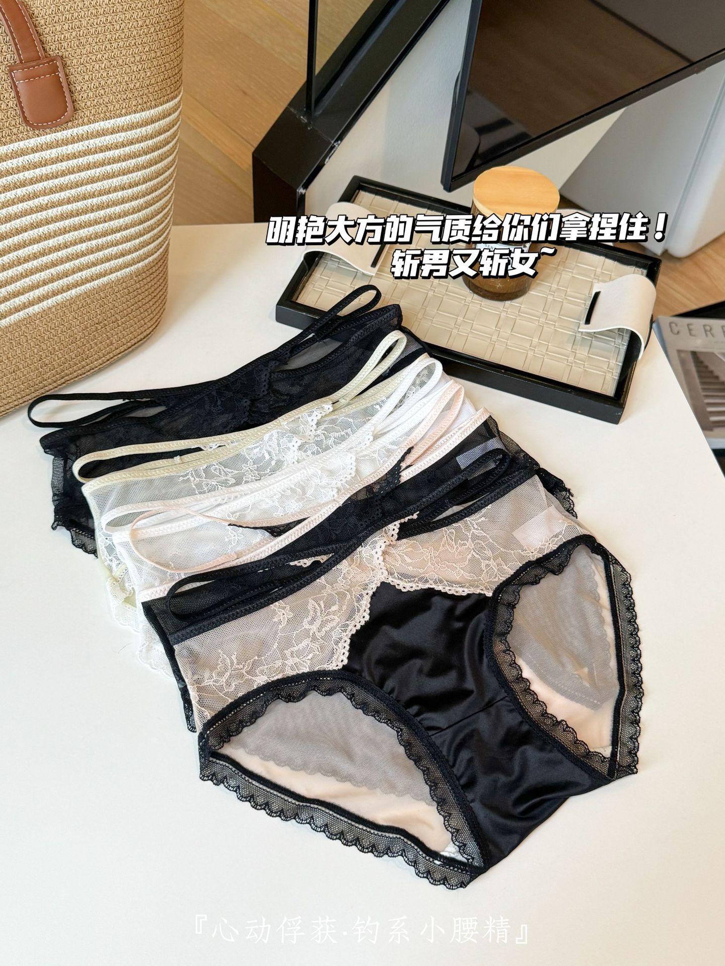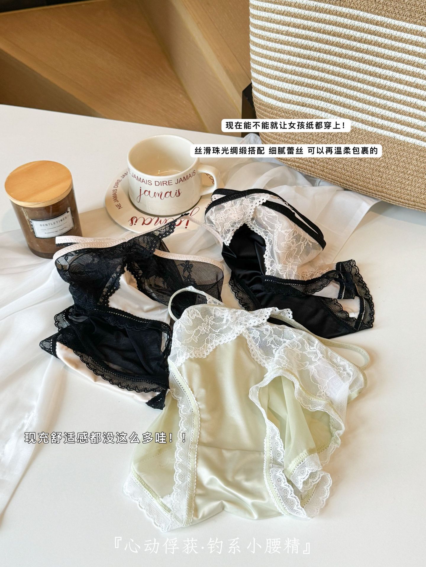 【到手3件!心动小妖精!】新款小妖精轻透蕾丝珠光性感内裤 空交叉丝带柔软触感可盐可甜展现腰线内裤
