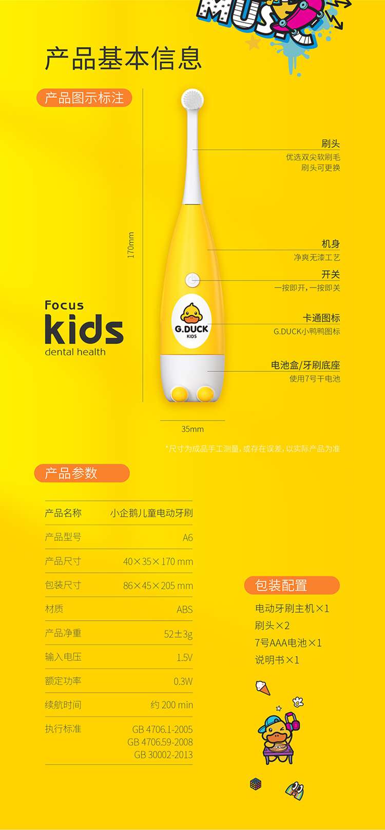 【自营】G.DUCK小黄鸭电动牙刷儿童超声波电动牙刷