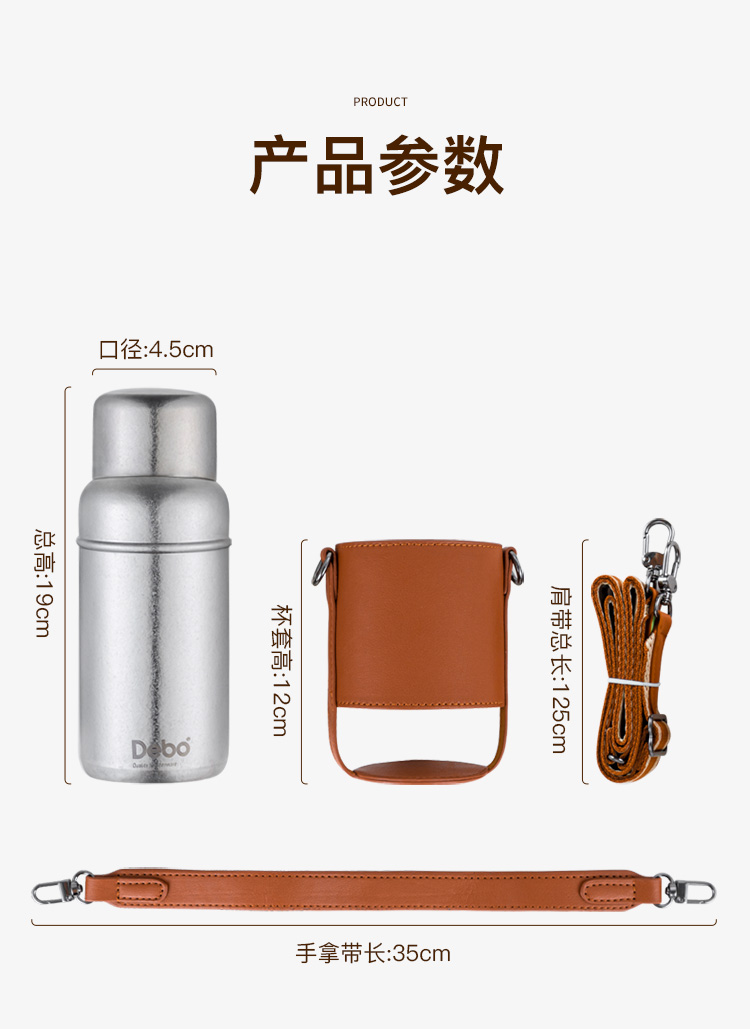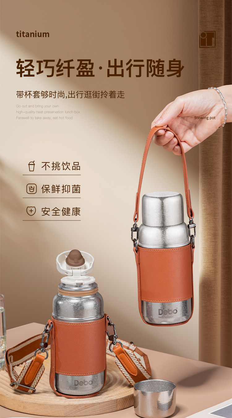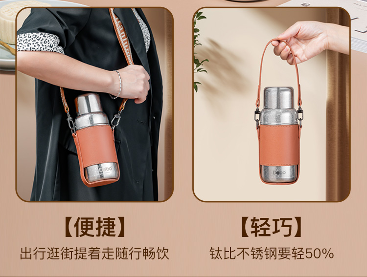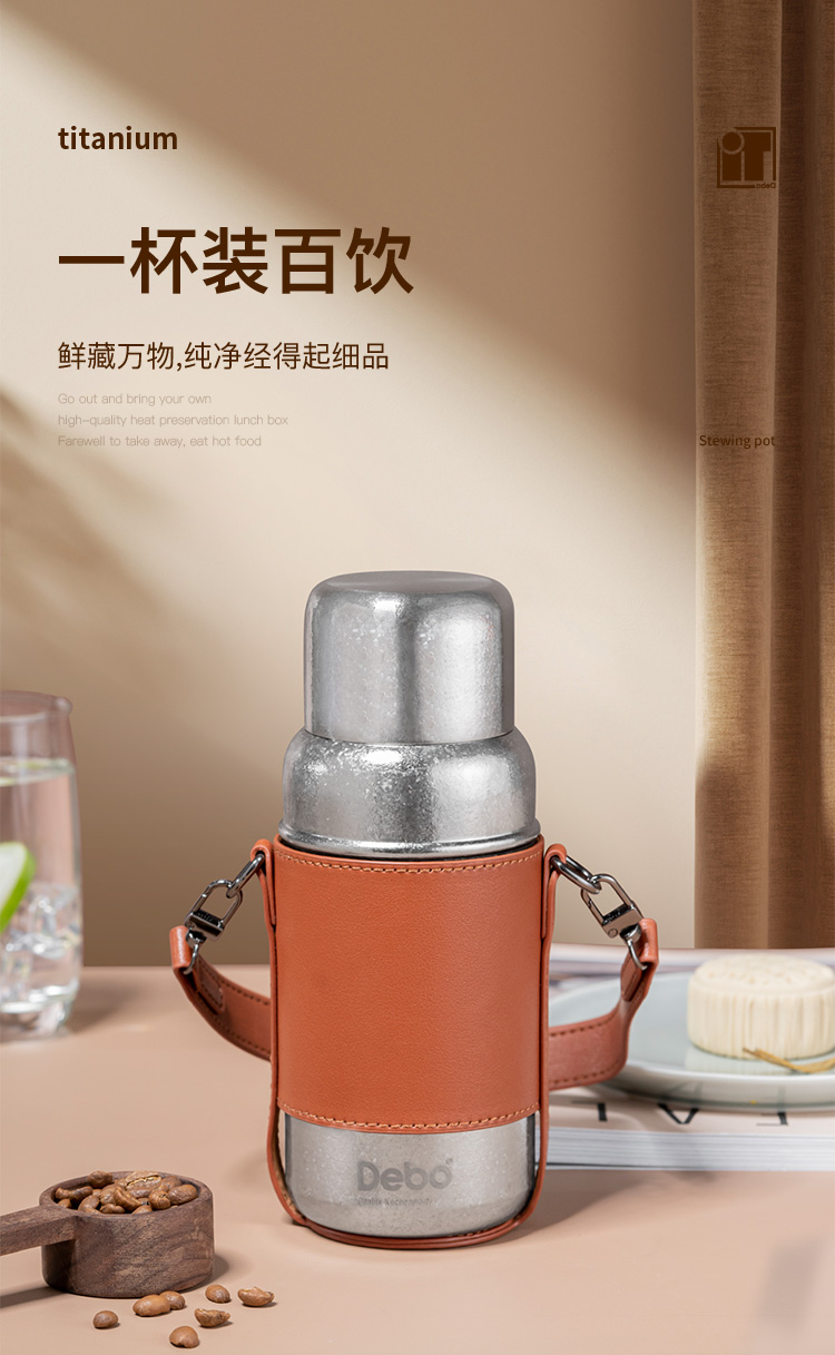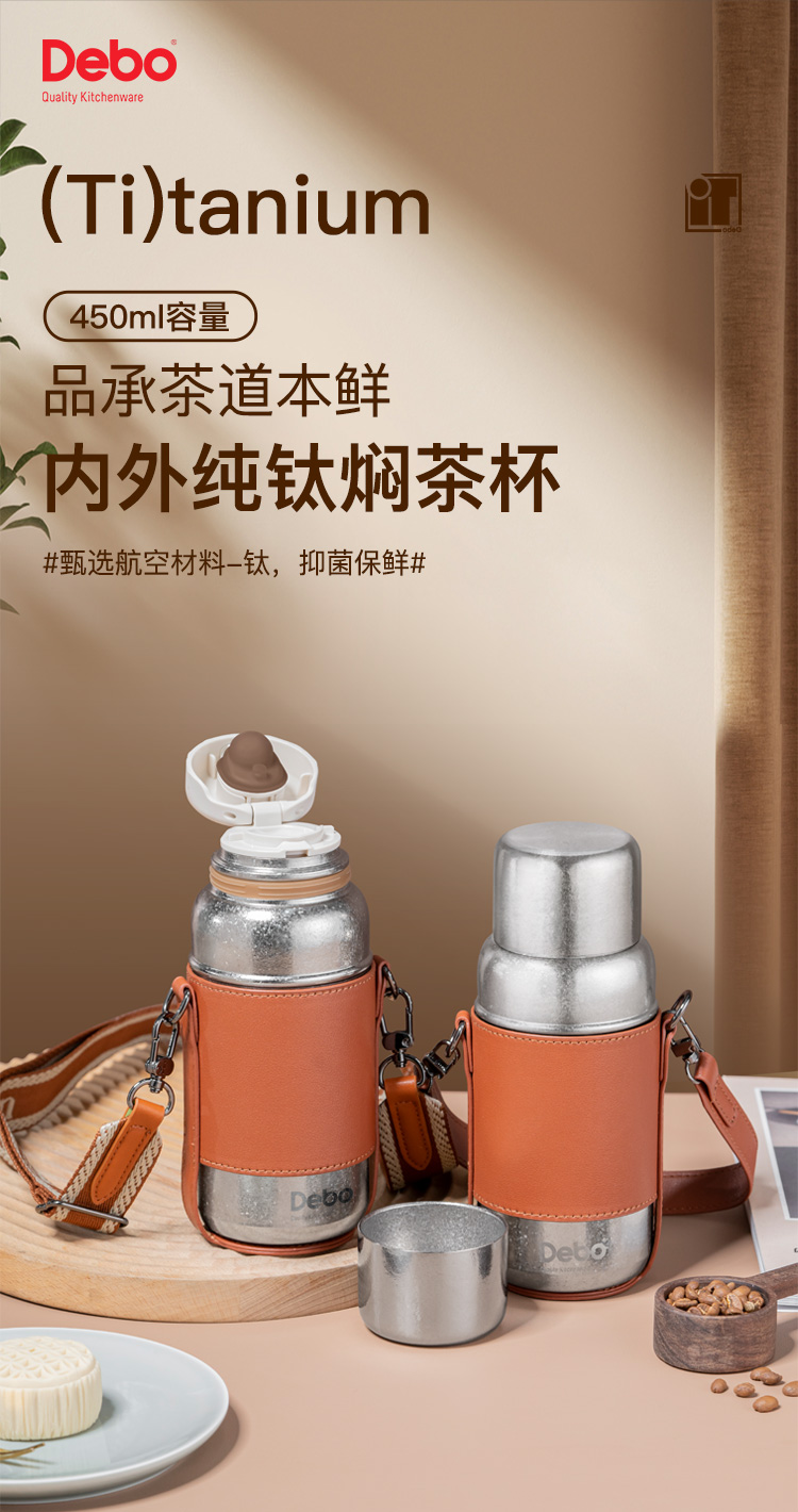 Debo德铂-潘多拉钛保温杯450ml 内外纯钛长效保温保冷(配杯套、背带)