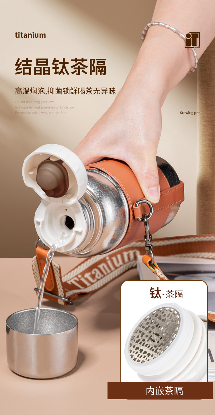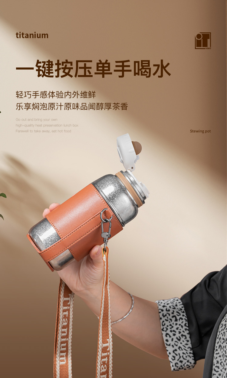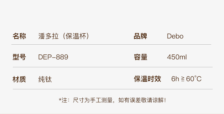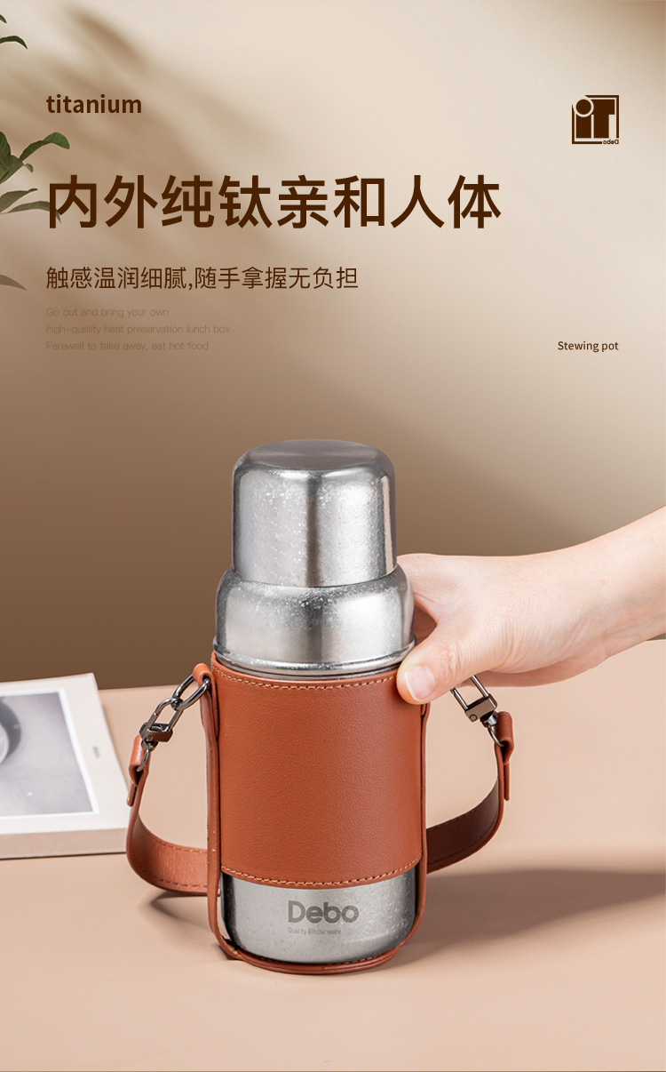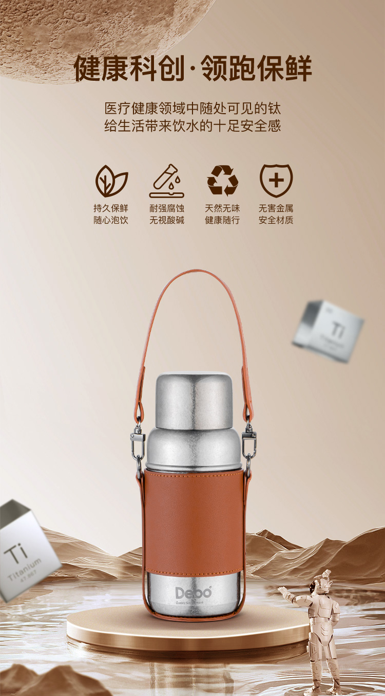 Debo德铂-潘多拉钛保温杯450ml 内外纯钛长效保温保冷(配杯套、背带)