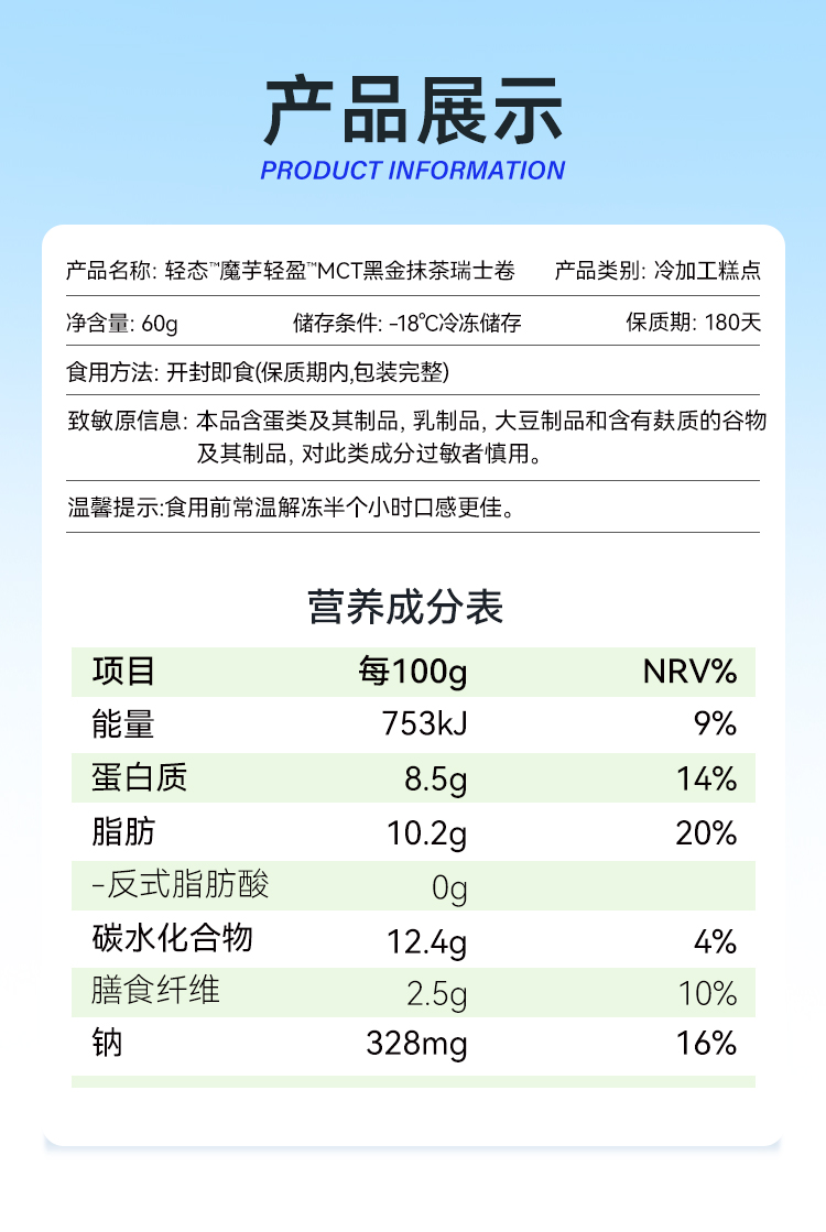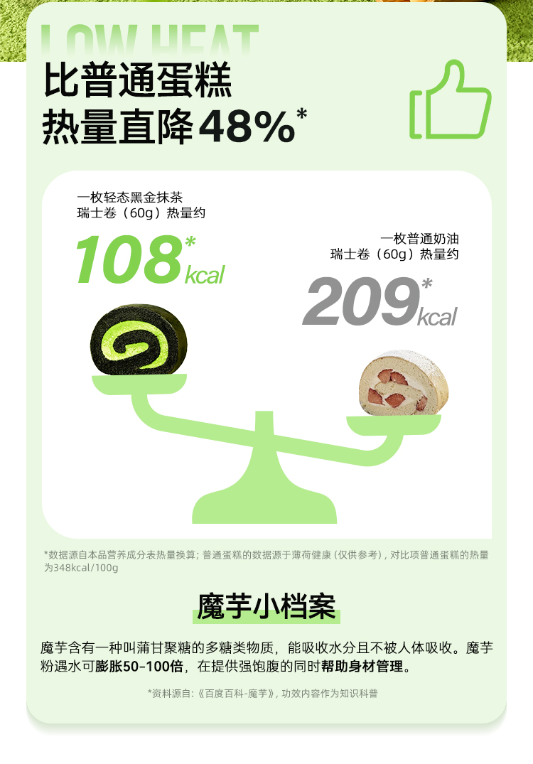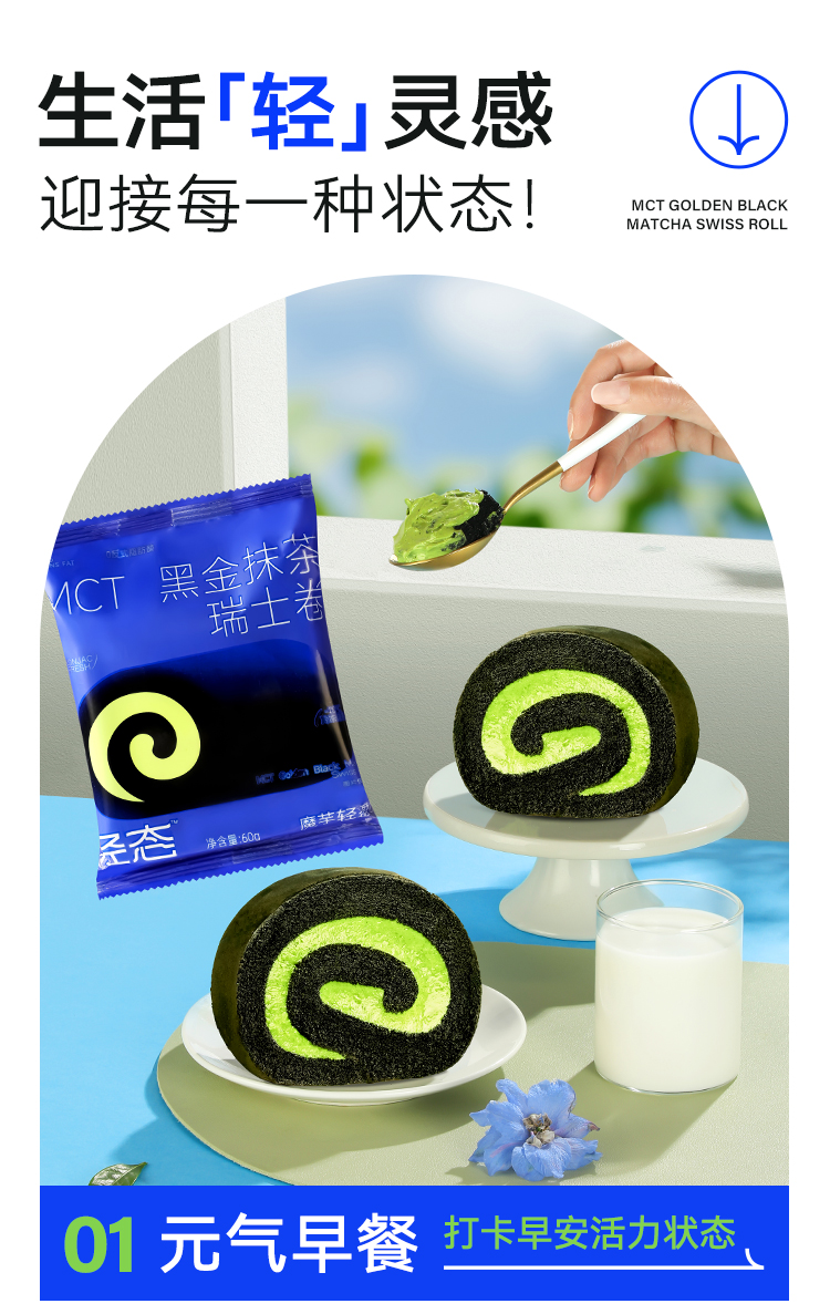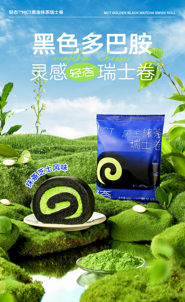 【🍜8.18-8.20健康低卡好味专场】MCT黑金抹茶瑞士卷【60g版】进口奶源 奶香醇厚 茶香馥郁