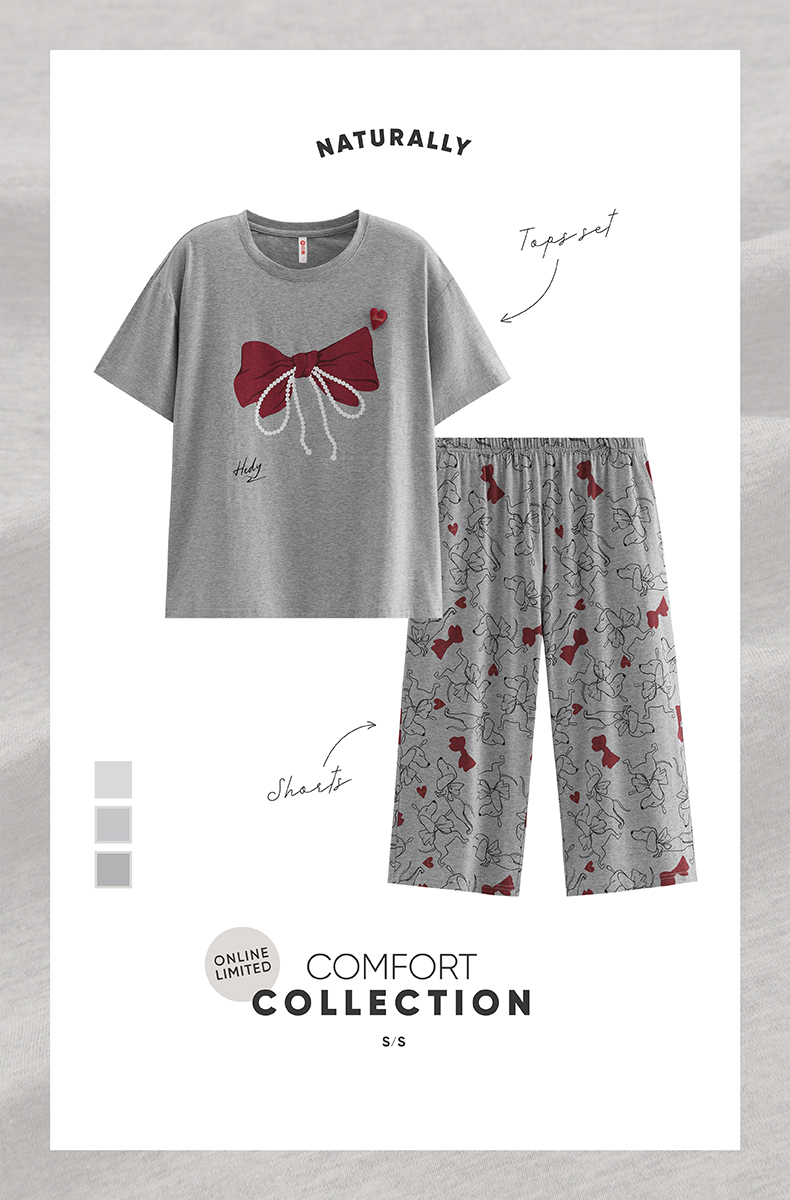 芬腾睡衣女款夏季新款纯棉圆领短袖七分裤套头卡通休闲家居服套装