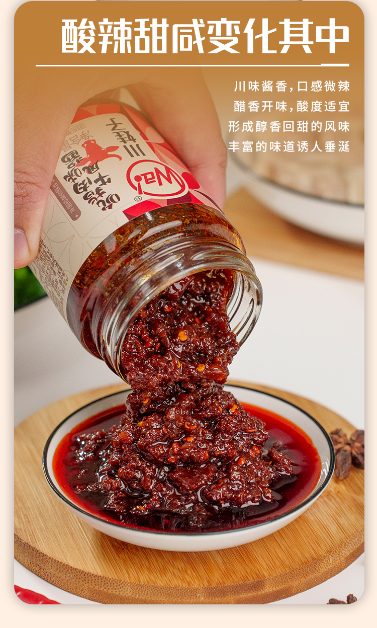 川娃子吮指牛肉酸甜辣口味 拌饭酱230g*2 四川特产调味品