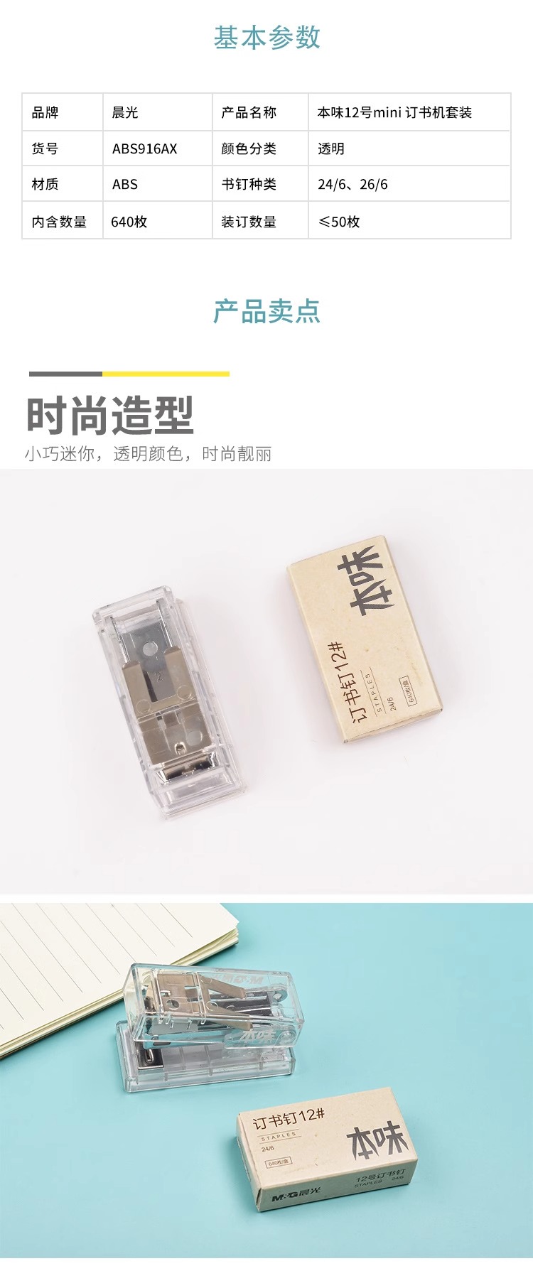 ABS916AX晨光本味12号MINI订书机套装 迷你订书机本味便携