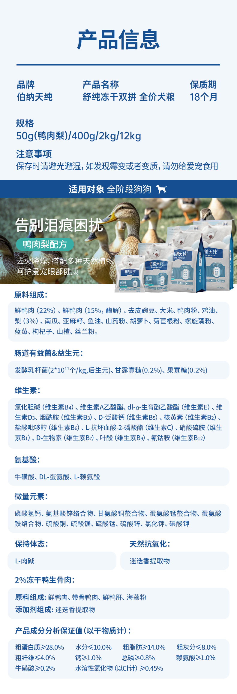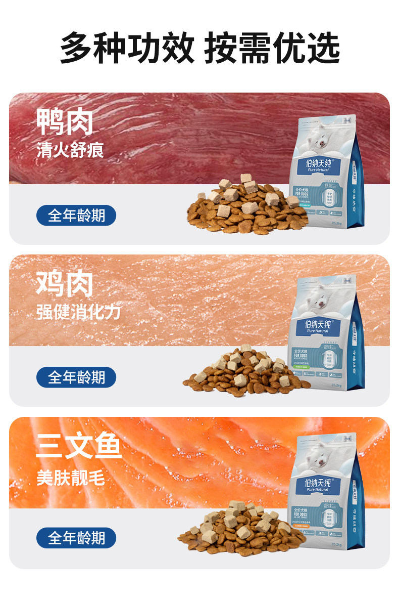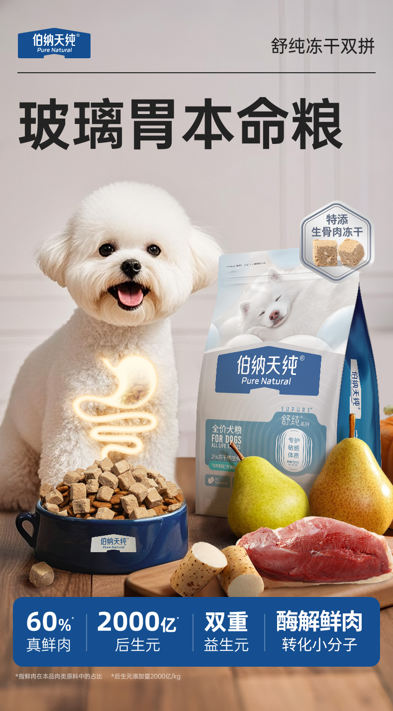 【新品】伯纳天纯舒纯升级款鲜肉生骨肉冻干双拼鸭肉梨狗粮12kg