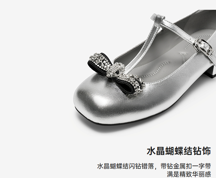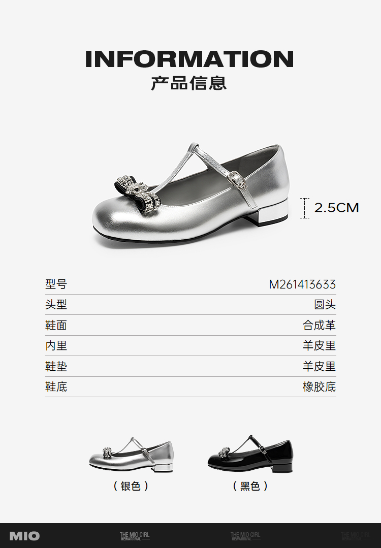 MIO米奥2026春季新款圆头粗跟T字带玛丽珍鞋蝴蝶结甜美风浅口单鞋M261413633