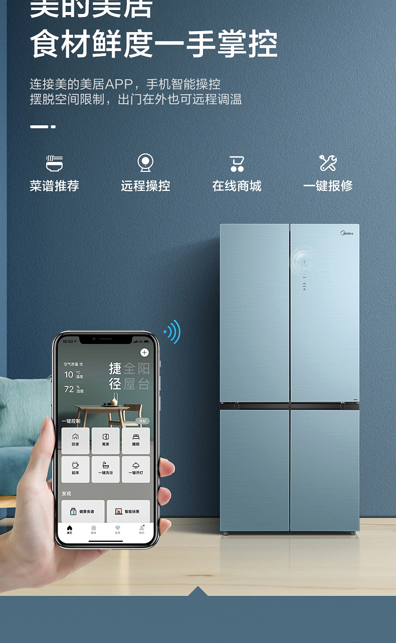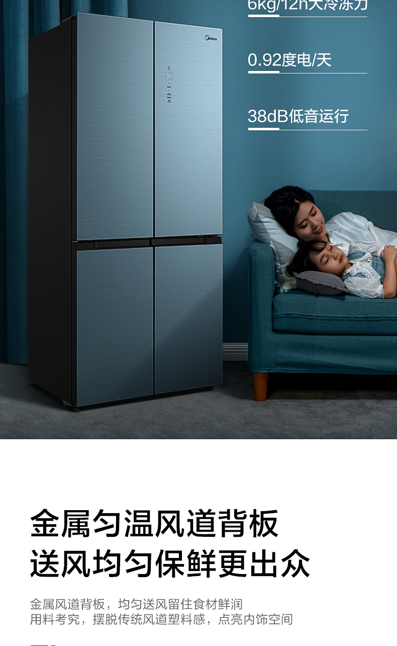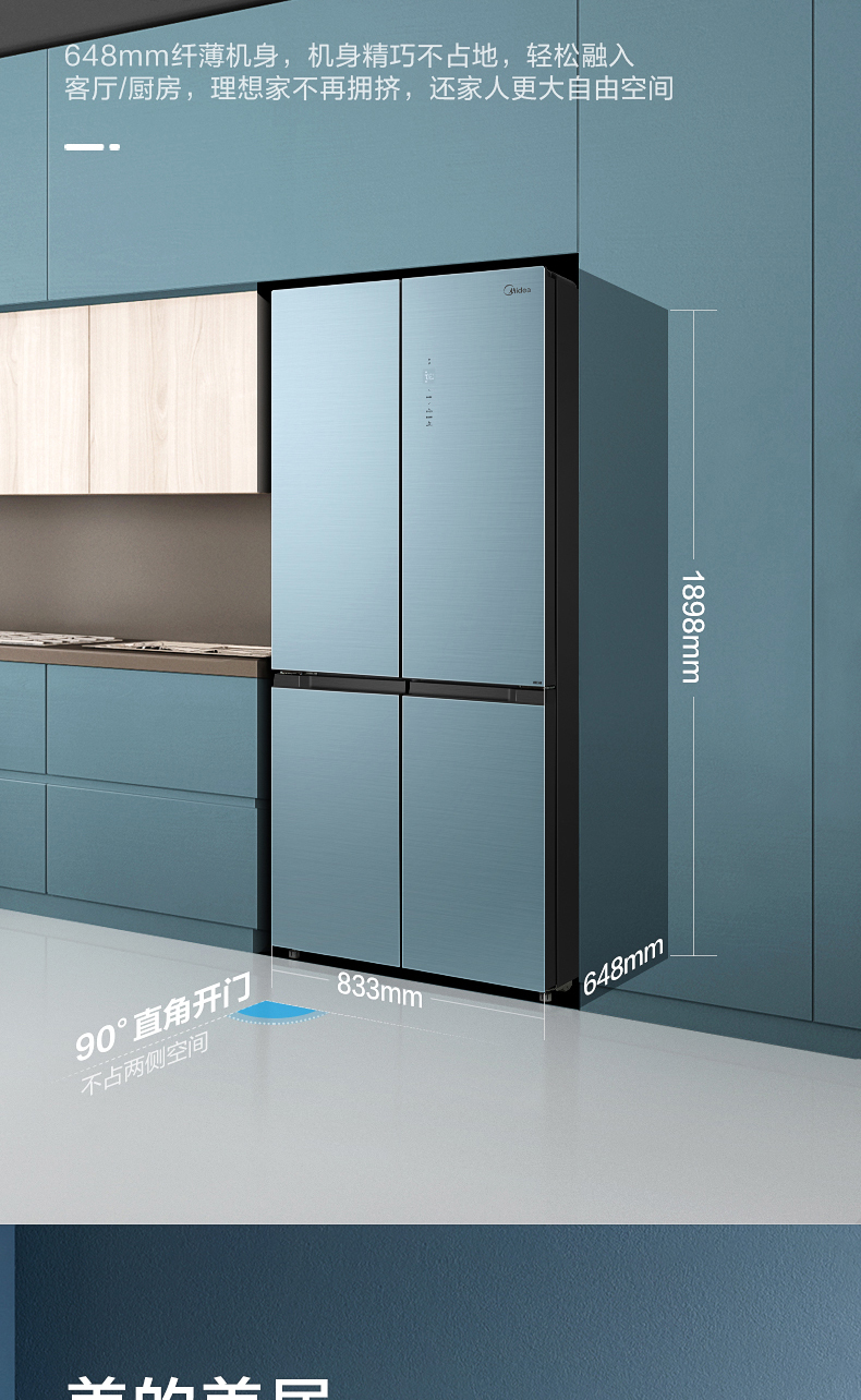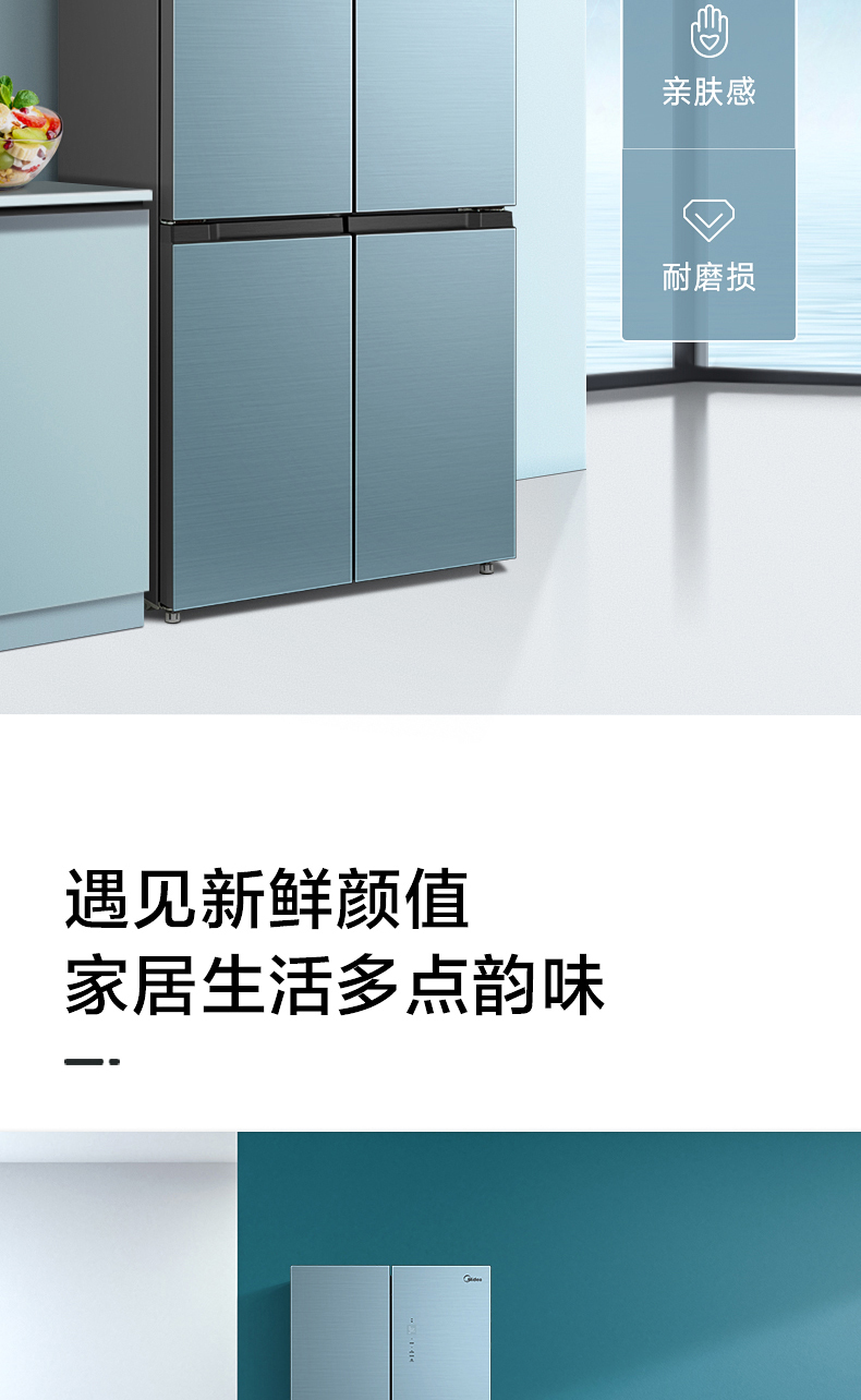 美的十字对开门电冰箱一级智能家电家用大容量冰箱 幻影蓝霓雾BCD-519WSGPZM(Q)