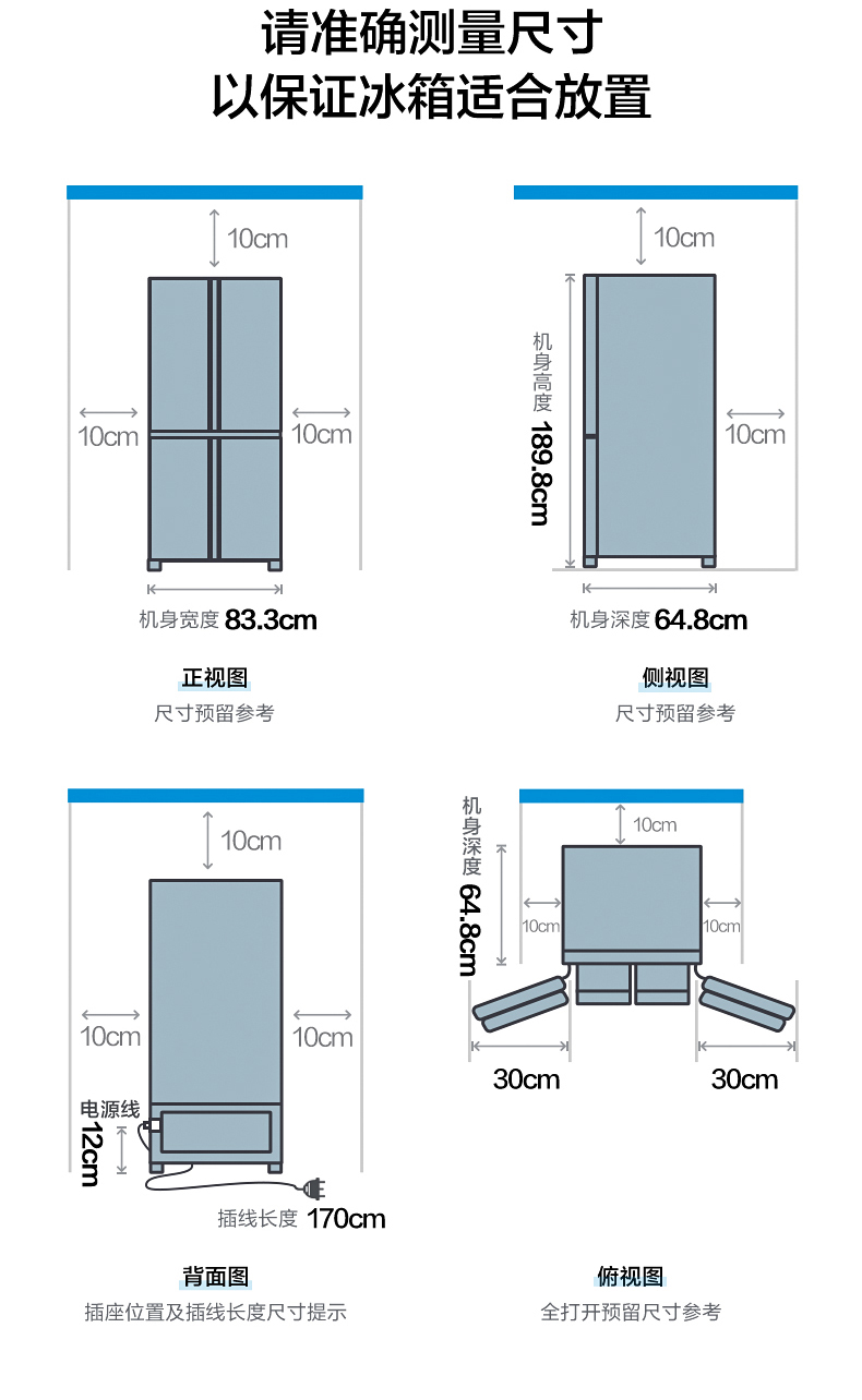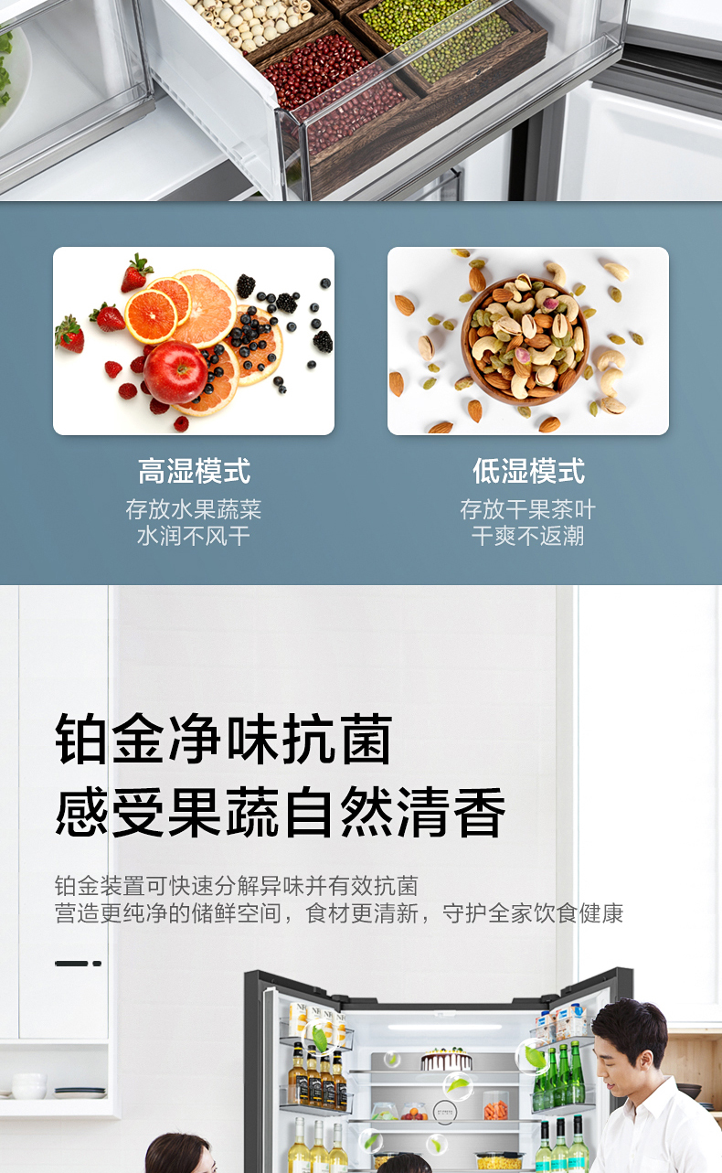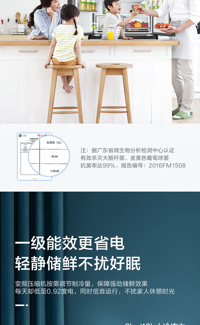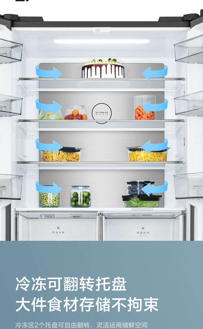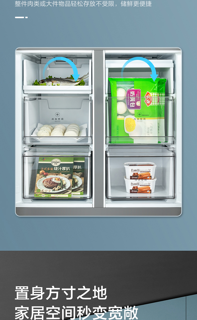 美的十字对开门电冰箱一级智能家电家用大容量冰箱 幻影蓝霓雾BCD-519WSGPZM(Q)