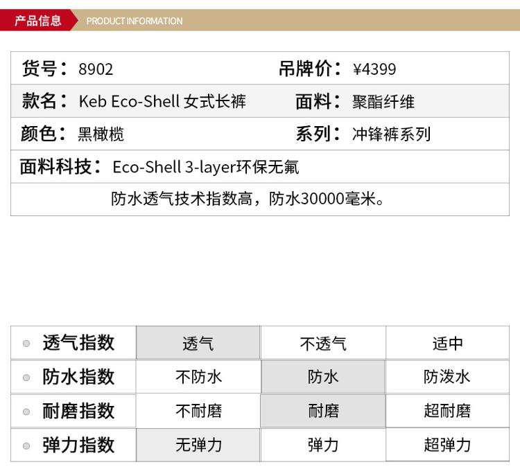 Fjallraven/北极狐春夏户外女款常规版型防水耐磨冲锋裤长裤89602