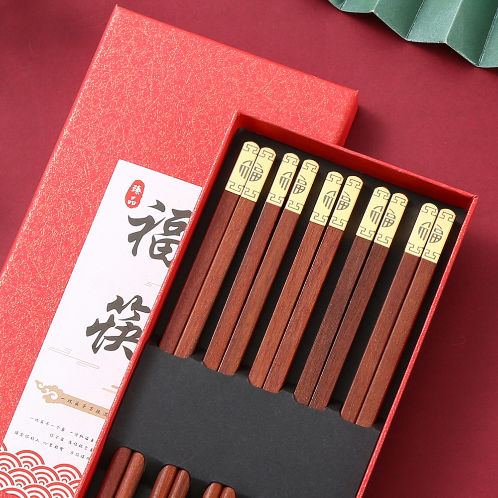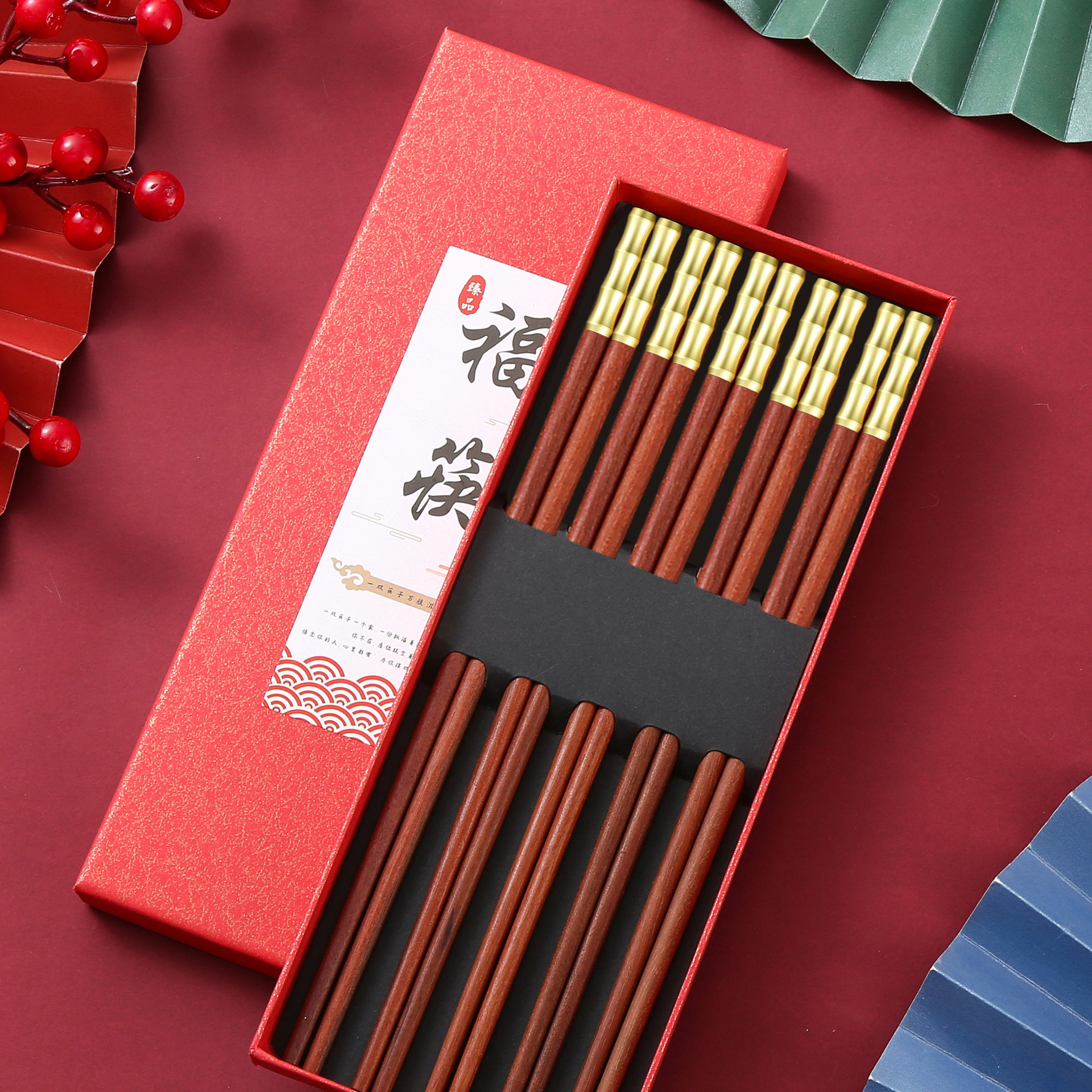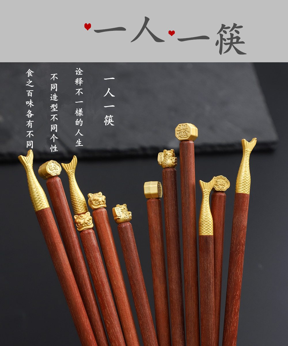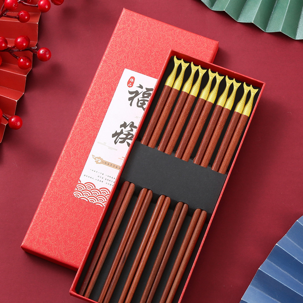 【新款混款红檀木筷子】年年有余 鱼尾家用一人一筷 10双不同混款 春节用品