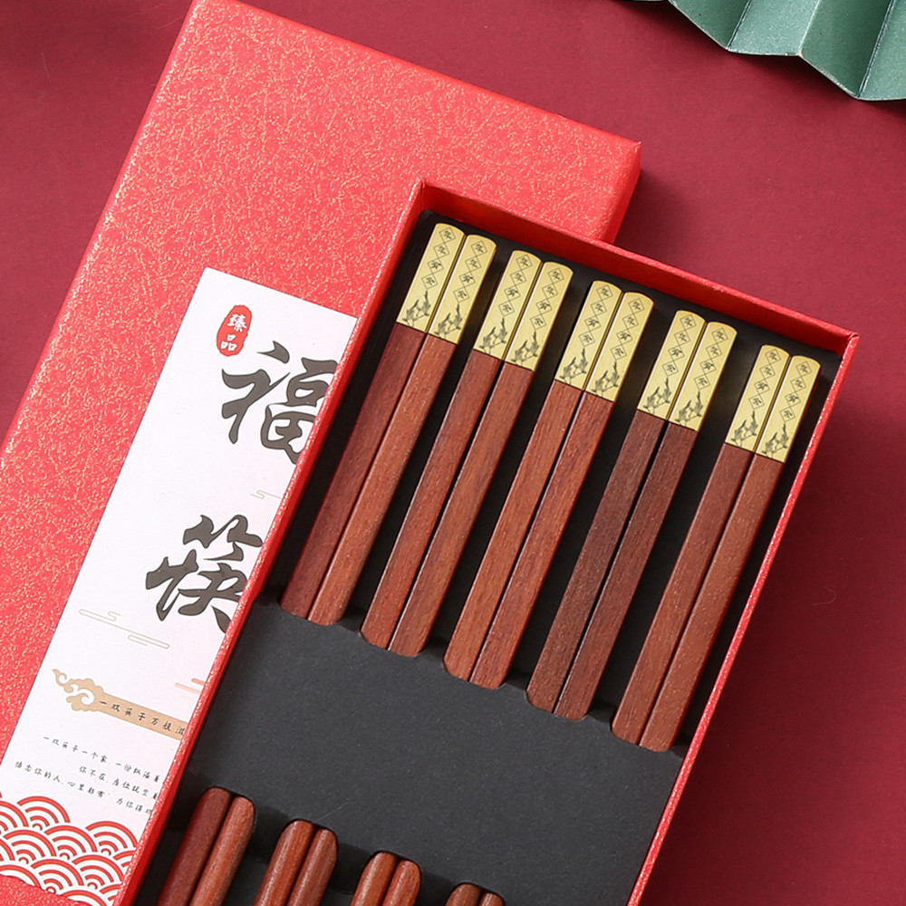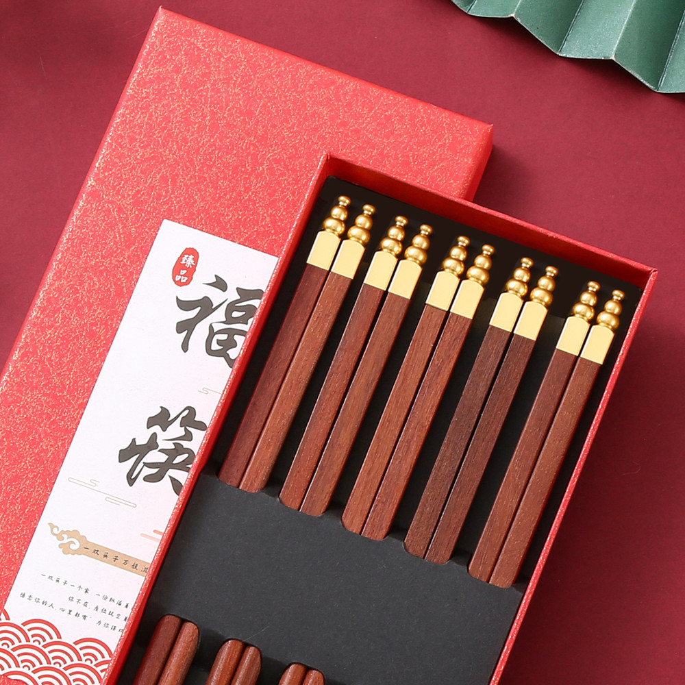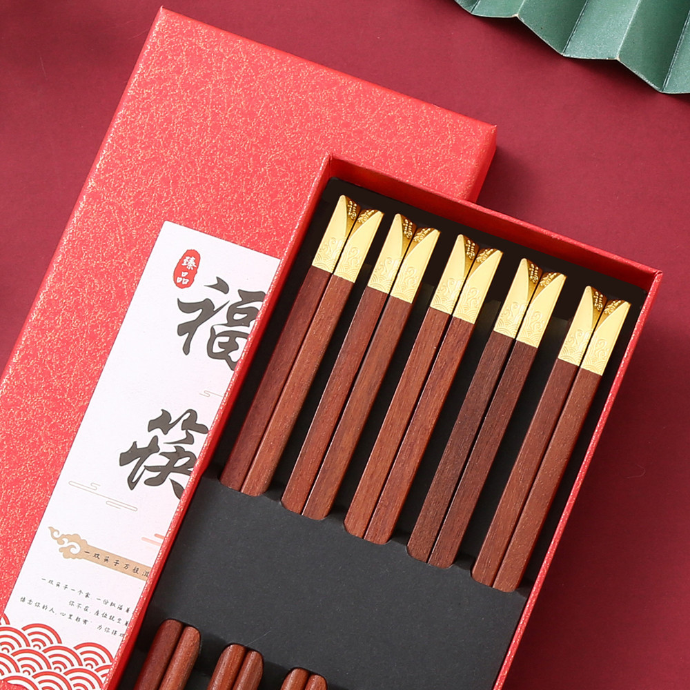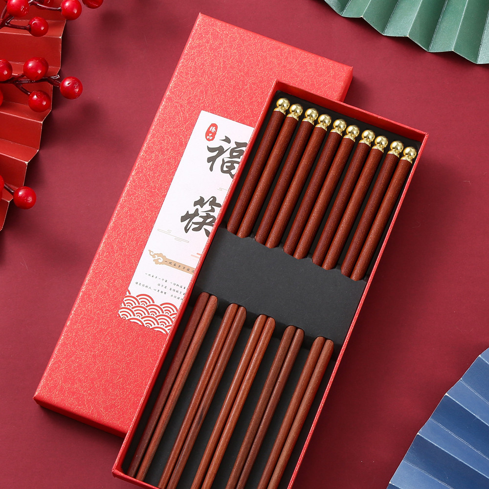 【新款混款红檀木筷子】年年有余 鱼尾家用一人一筷 10双不同混款 春节用品