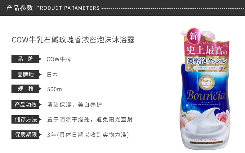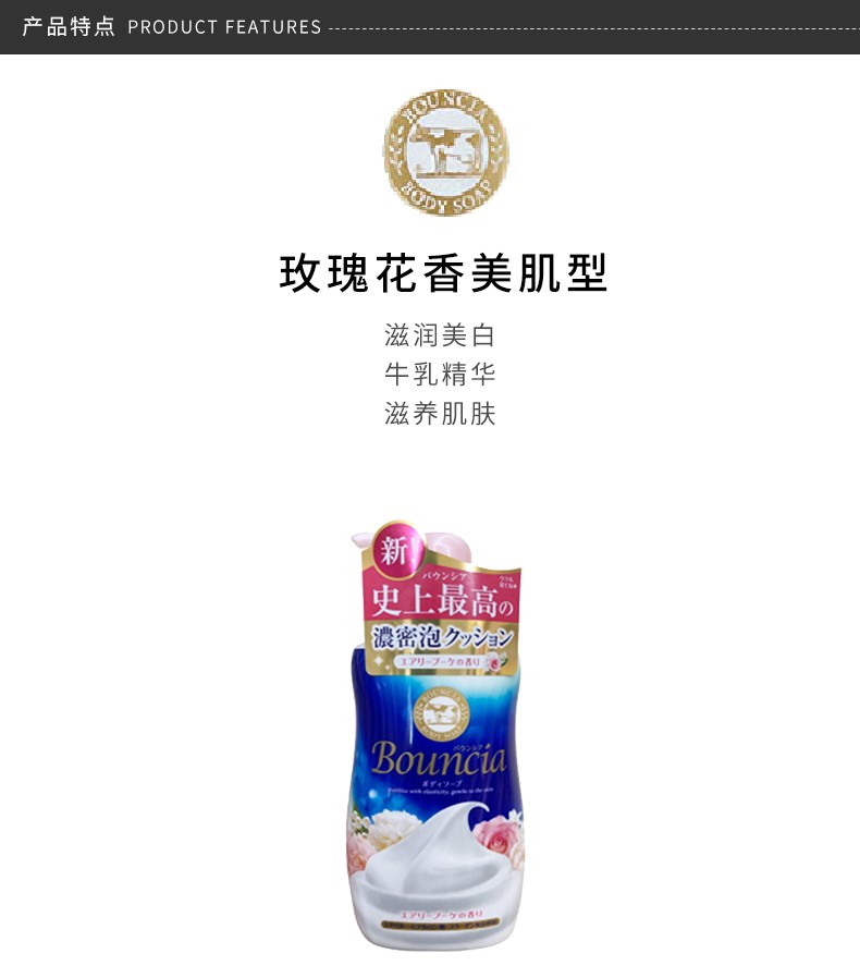 Cow bouncia 牛乳石碱 浓密泡沫高保湿沐浴露500ml 新旧版随机发货 日本