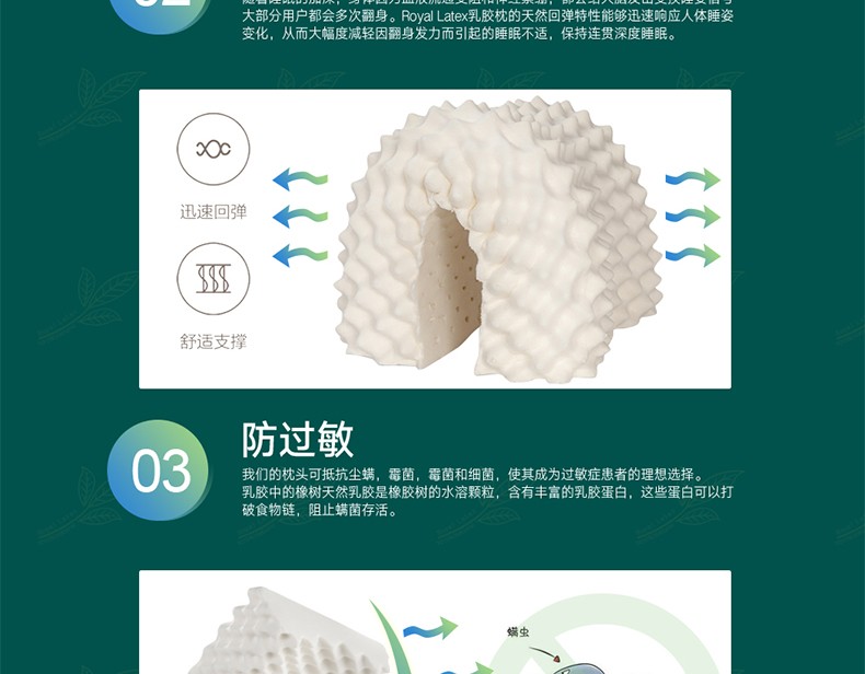 ROYAL LATEX 皇家天然乳胶枕套装 狼牙枕+女士美容枕+儿童波浪枕 泰国