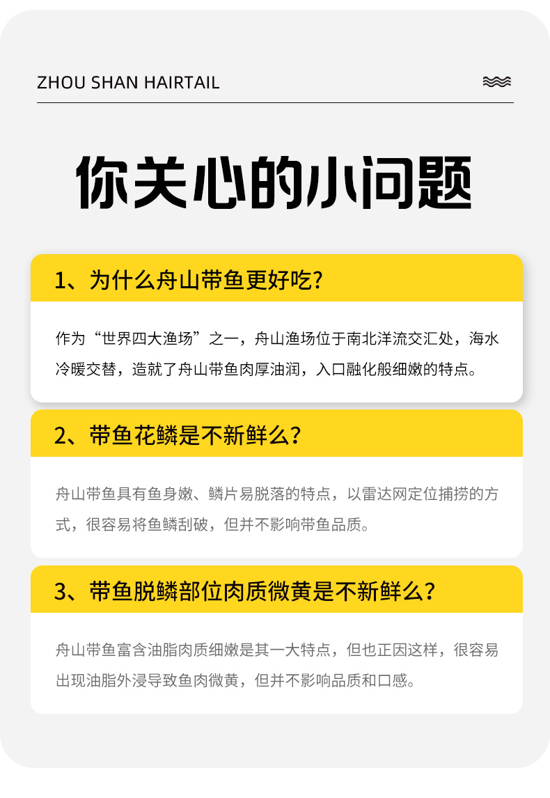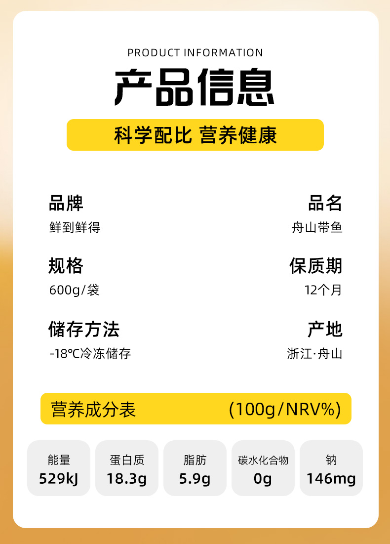 【鲜到鲜得】舟山带鱼600g 去头去尾段装 单条精选180-230克原料