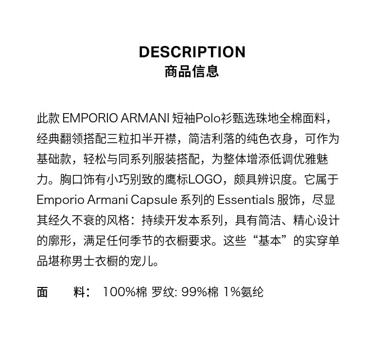 【特价商品不退不换】E ARMANI POLO衫男 8N1FQ21JTKZ-0100 .