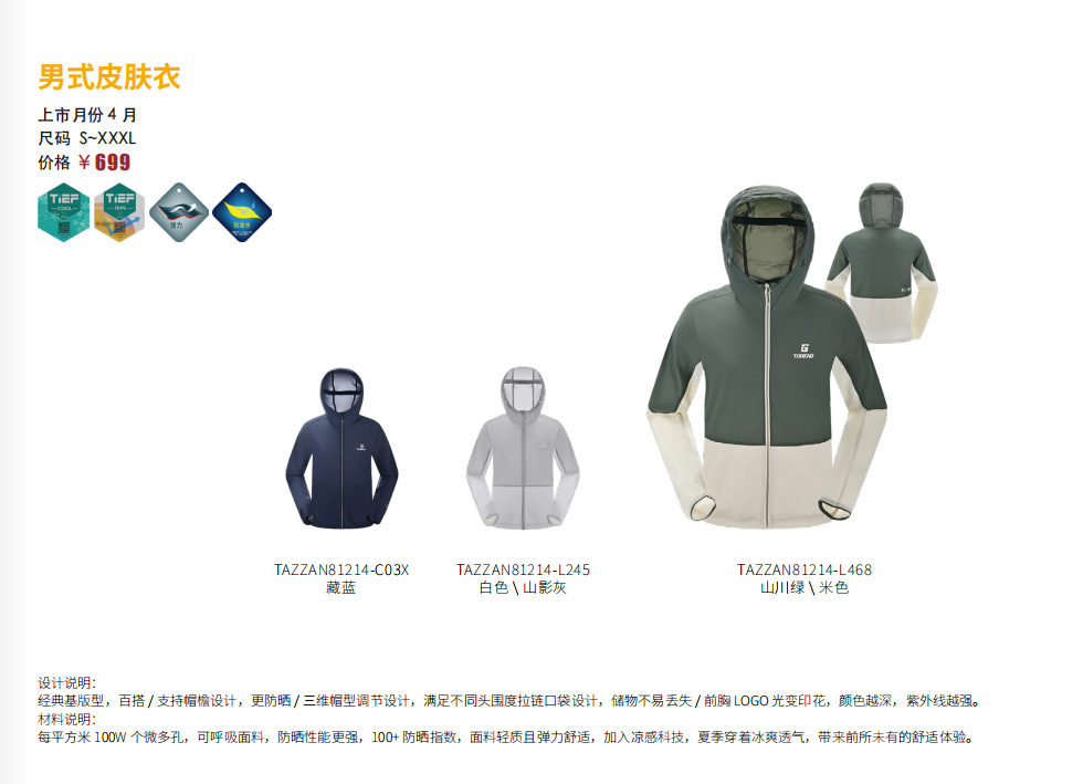 探路者男式皮肤衣TAZZAN81214