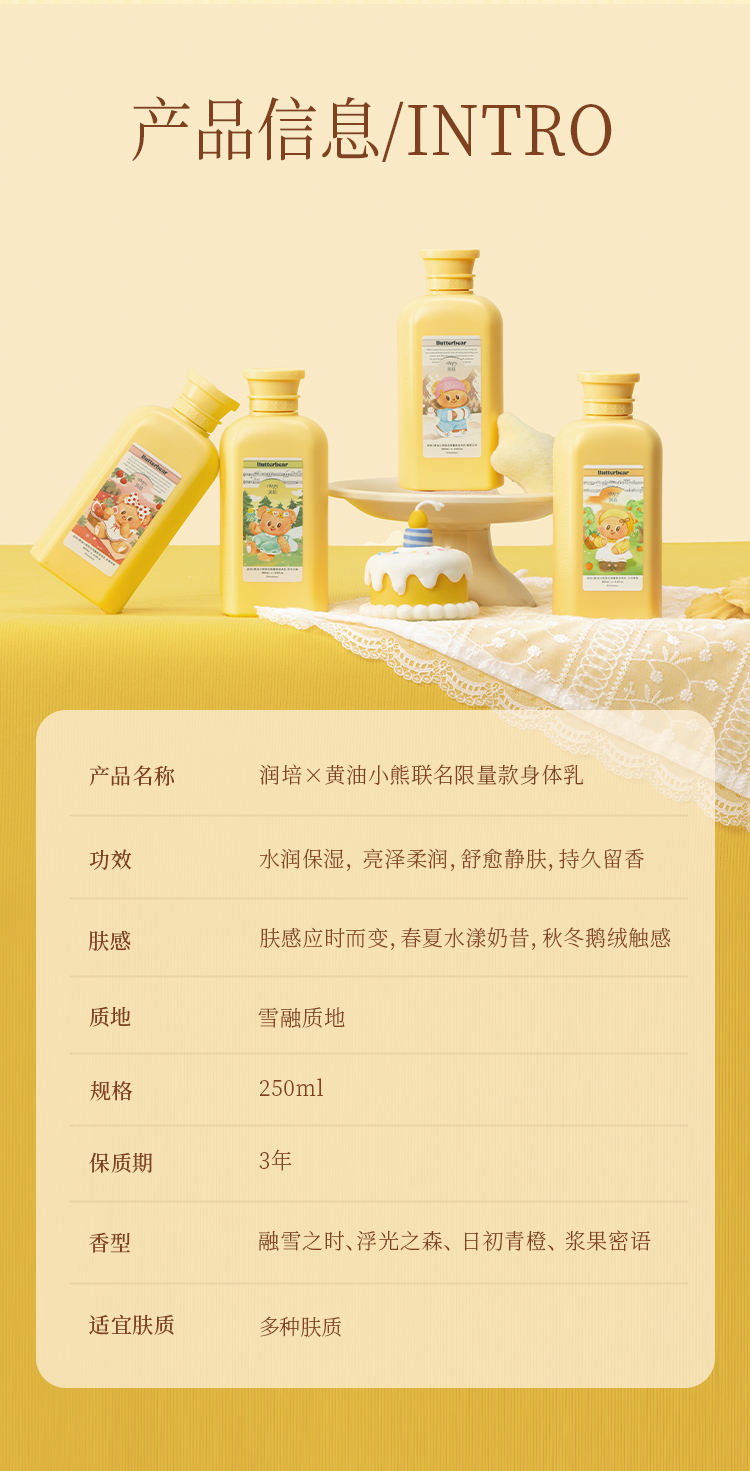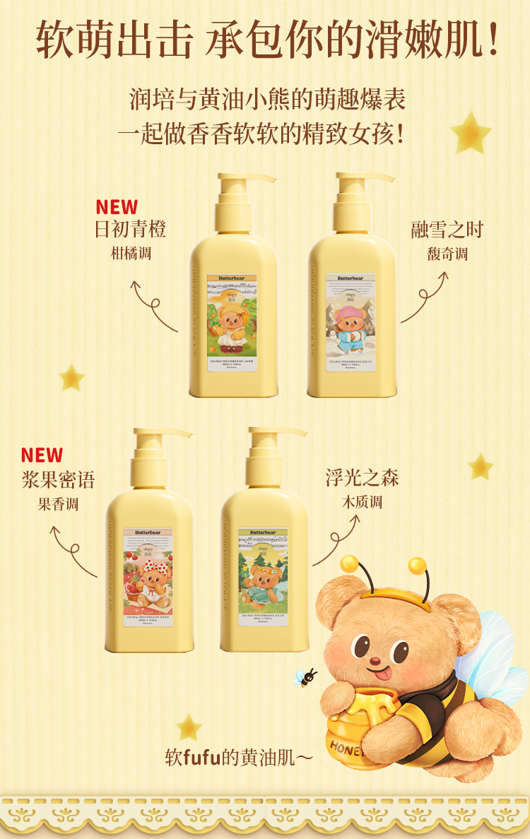 𝟒𝟗.𝟗🉐𝟐𝟓𝟎𝗺𝗹💥润培×黄油小熊联名款香氛身体乳💛 滋润保湿💐限定新香可选