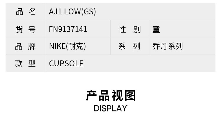 耐克乔丹男童AJ1大童运动童鞋