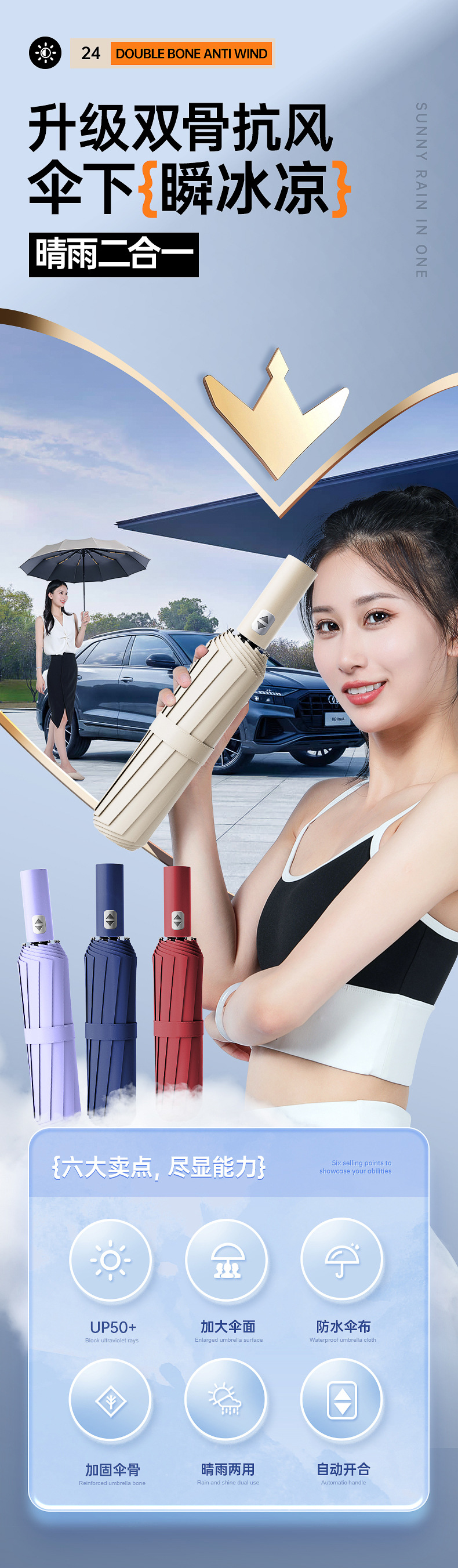「24骨全自动!晴雨两用」全自动伞男女折叠伞加固防晒居家日用加大号雨伞