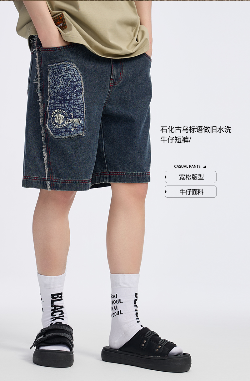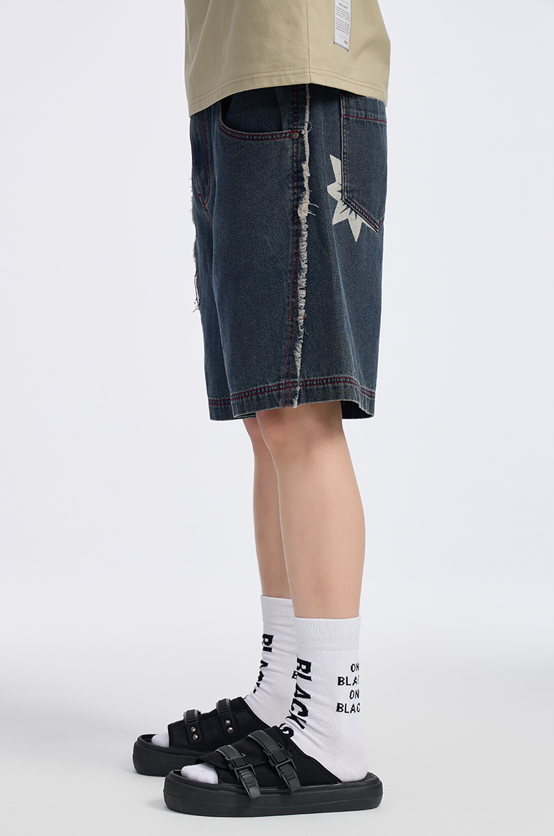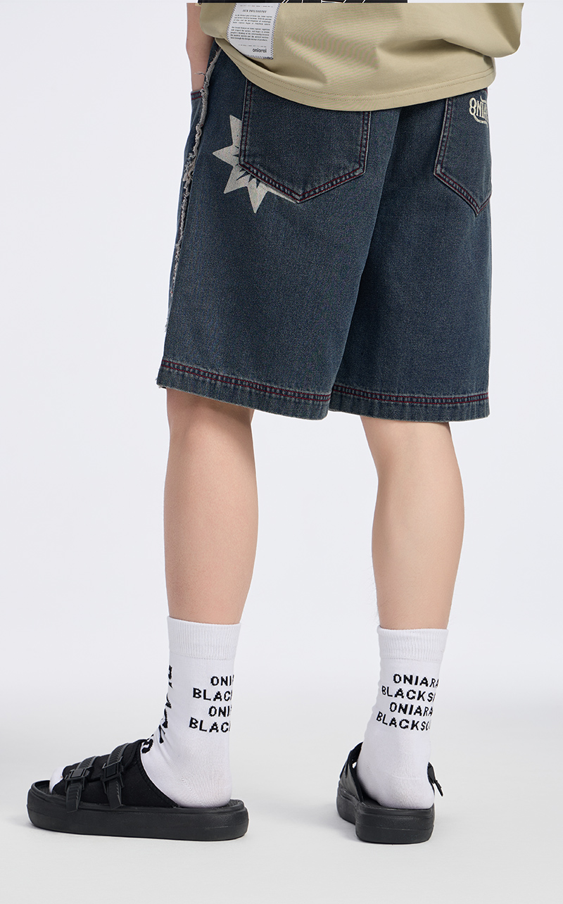 ONIARAI/鬼洗 石化古乌标语做旧水洗牛仔短裤 24A0544