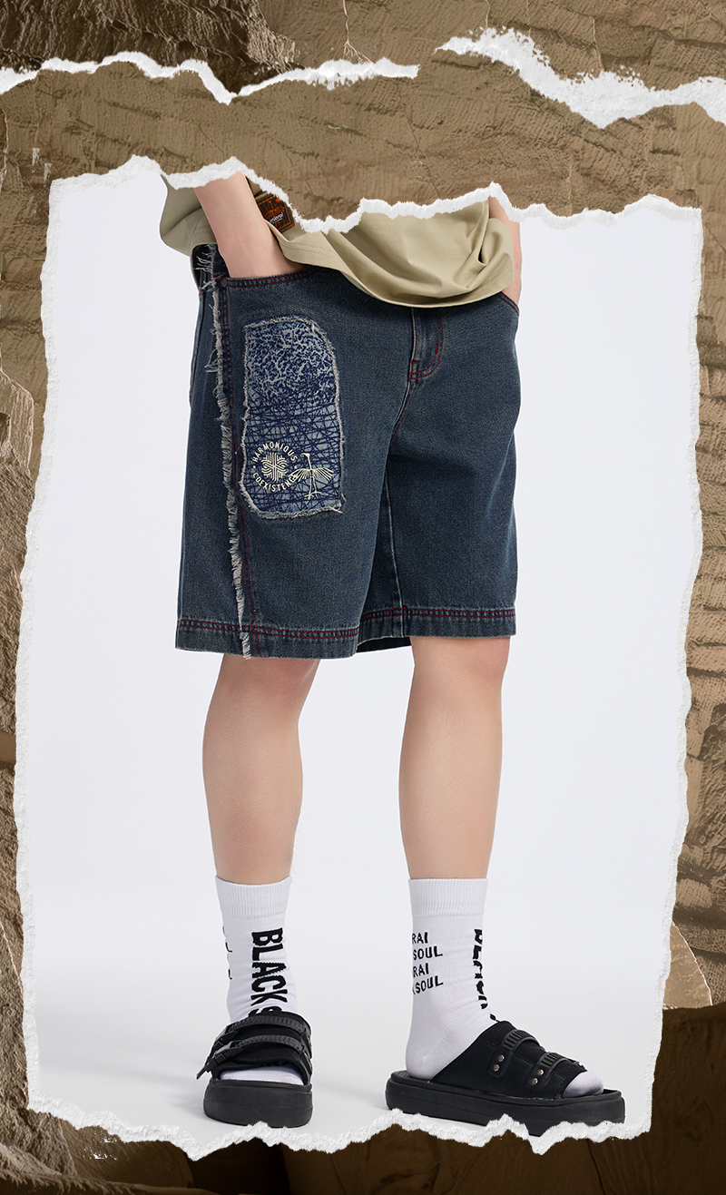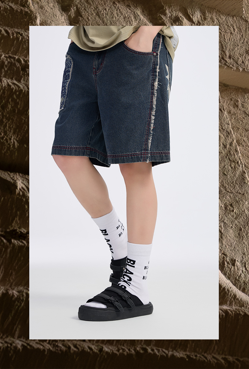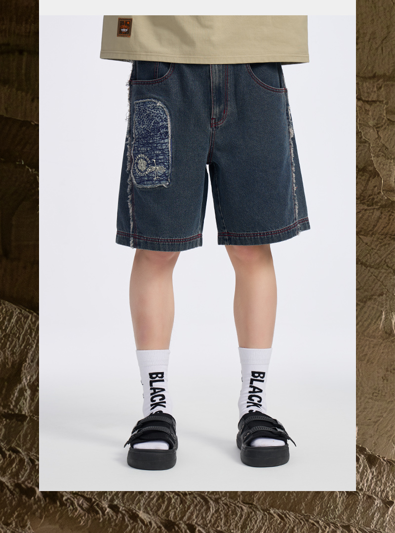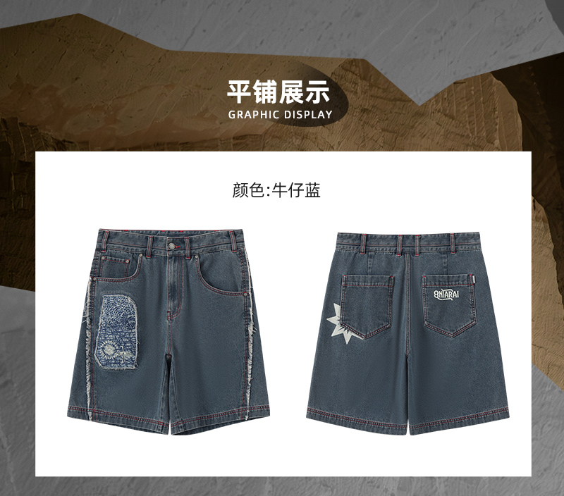ONIARAI/鬼洗 石化古乌标语做旧水洗牛仔短裤 24A0544