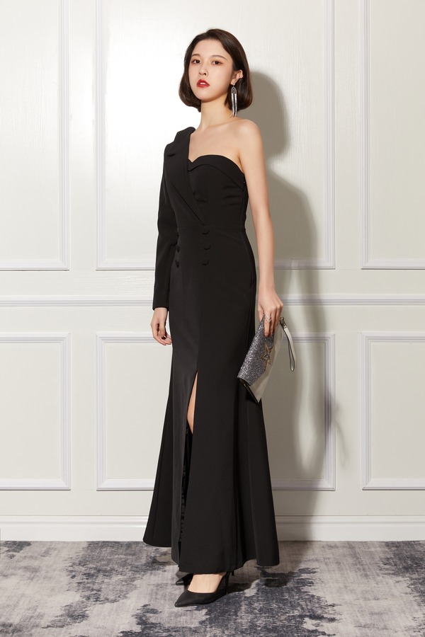 ESTELLICA 黑色露肩礼服连衣裙 10838