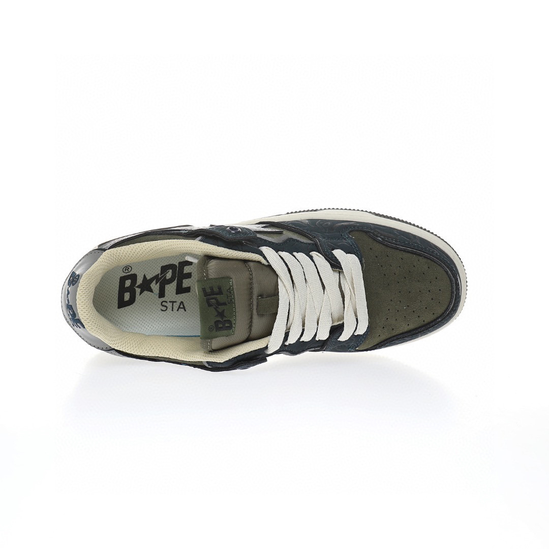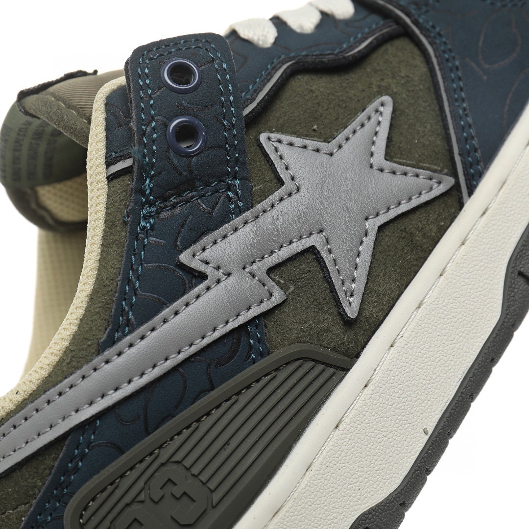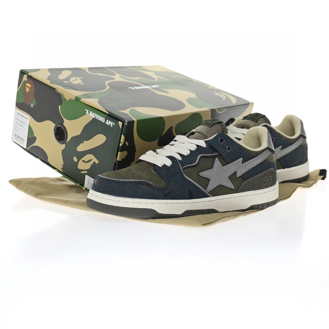 【新品实拍篇】💯优选版#男鞋真标半码制#采用硬质压纹牛剖皮组合反绒皮革材质鞋面#鞋垫嵌入Ortholite(欧索莱)缓震材质#外置耐磨橡胶大底❗️ 猿祖鞋款重塑,进化新作集结❗️日本里原宿潮流品牌A Bathing Ape安逸猿BAPE Sk8 Sta Low SK8系列低帮休闲运动滑板板鞋"皮革海军蓝橄榄绿"1H80-191-019
