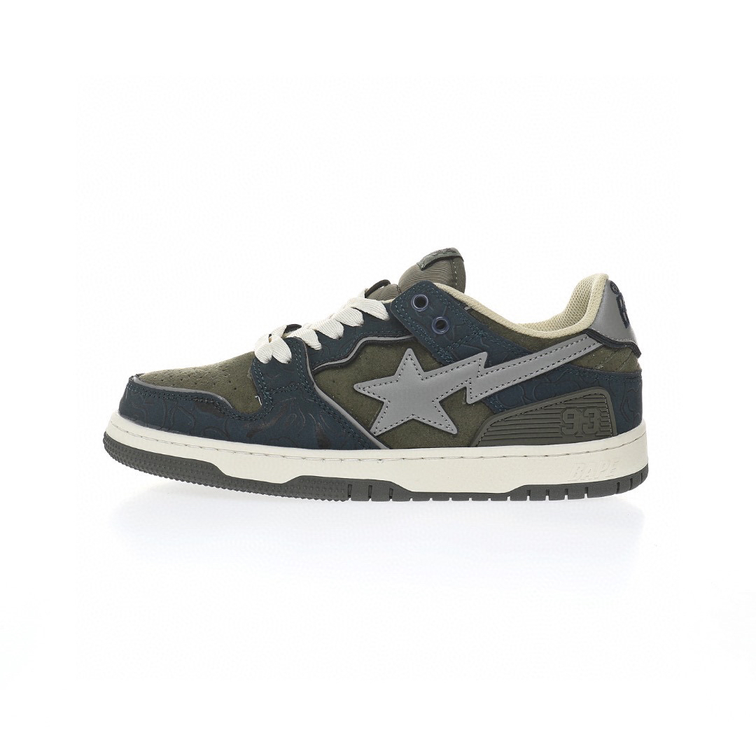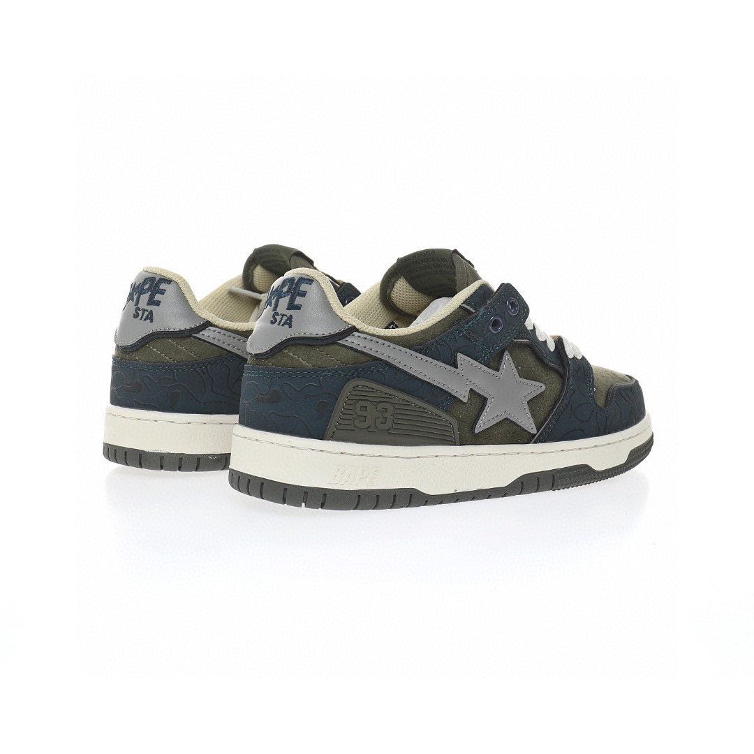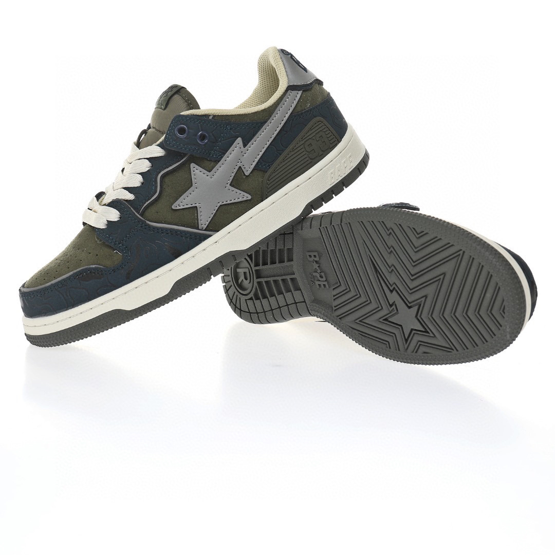 【新品实拍篇】💯优选版#男鞋真标半码制#采用硬质压纹牛剖皮组合反绒皮革材质鞋面#鞋垫嵌入Ortholite(欧索莱)缓震材质#外置耐磨橡胶大底❗️ 猿祖鞋款重塑,进化新作集结❗️日本里原宿潮流品牌A Bathing Ape安逸猿BAPE Sk8 Sta Low SK8系列低帮休闲运动滑板板鞋"皮革海军蓝橄榄绿"1H80-191-019