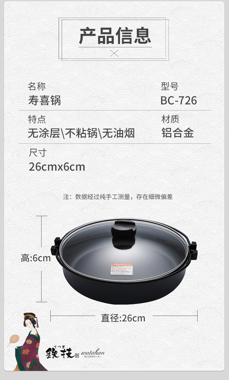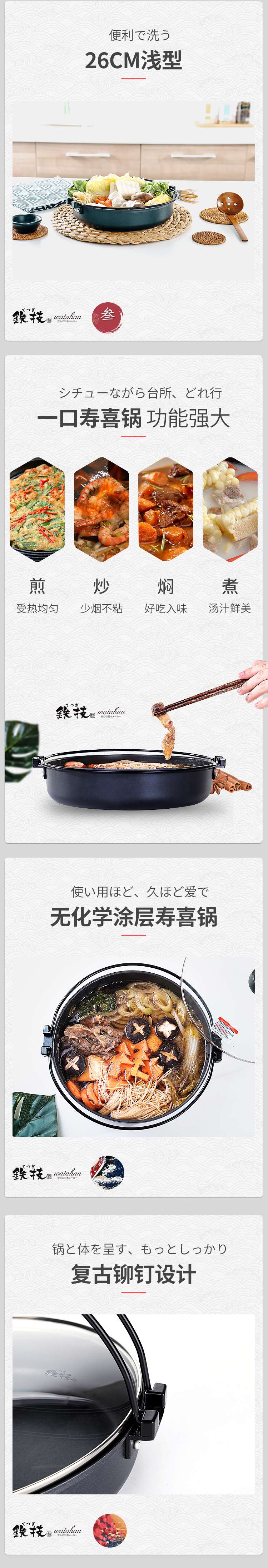 铁技Watahan 寿喜锅26cm 炖锅煮锅 日本