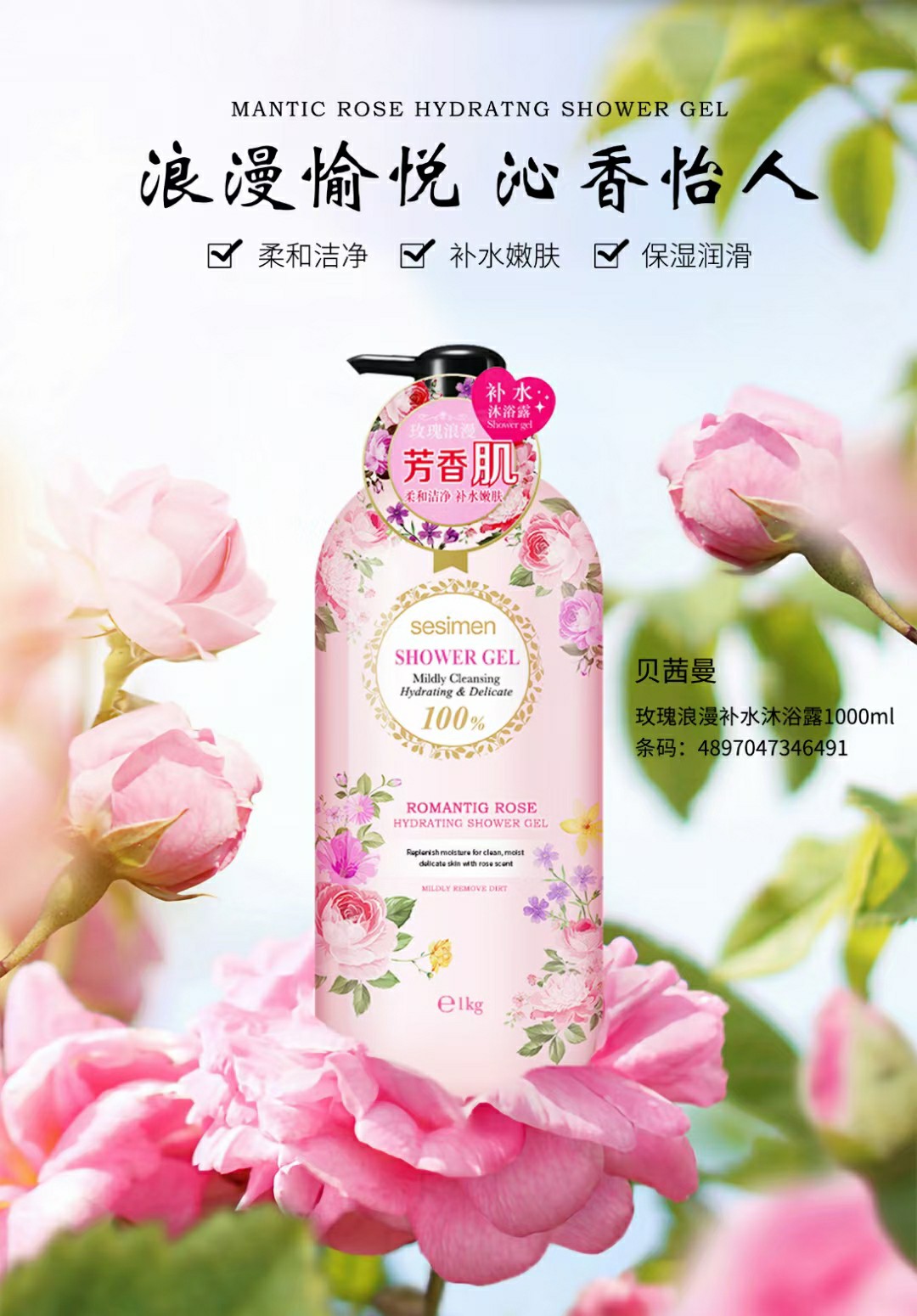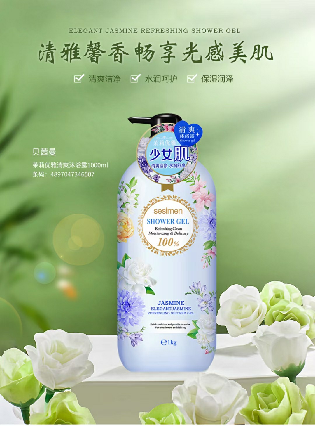 1000ml贝茜曼绿茶玫瑰茉莉樱花沐浴露保湿补水润沐浴乳持久香氛
