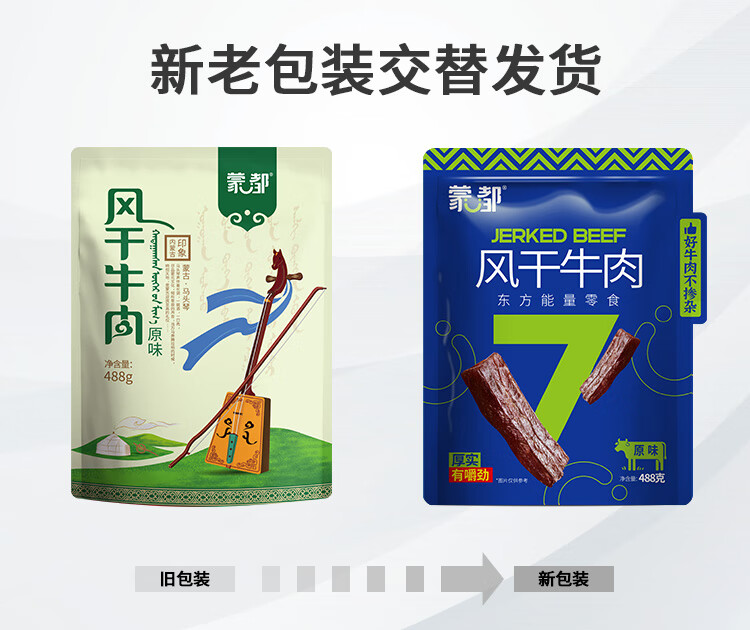 蒙都 风干牛肉干 原味488g 约七成风干 袋装 3503744