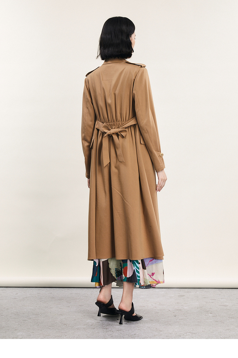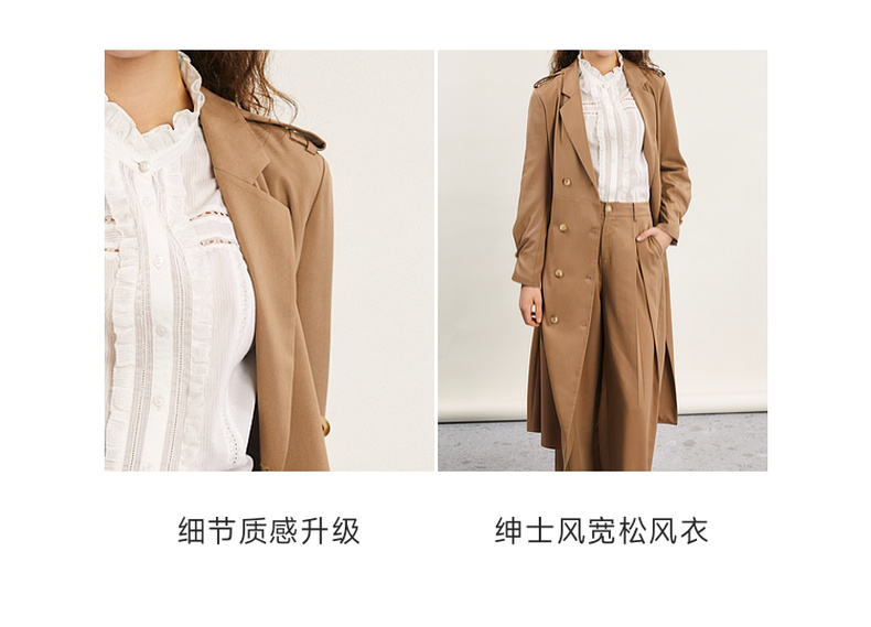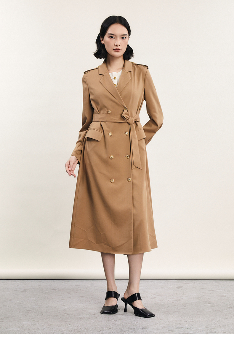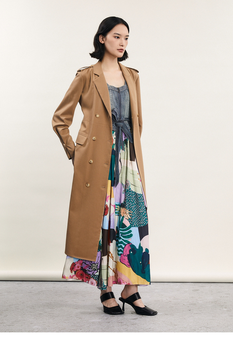 谜底长款风衣女2024春款时尚气质西装领双排扣宽松外套241ME0136