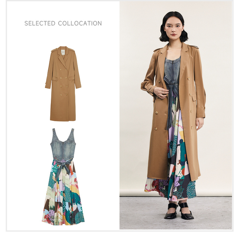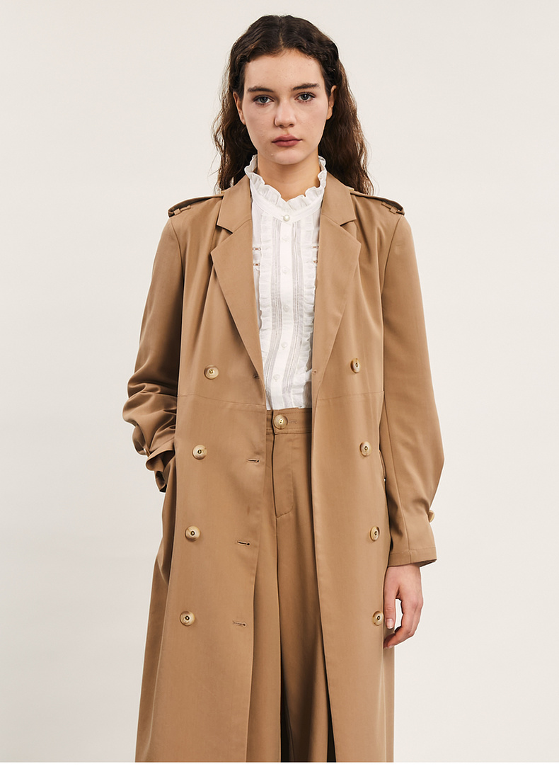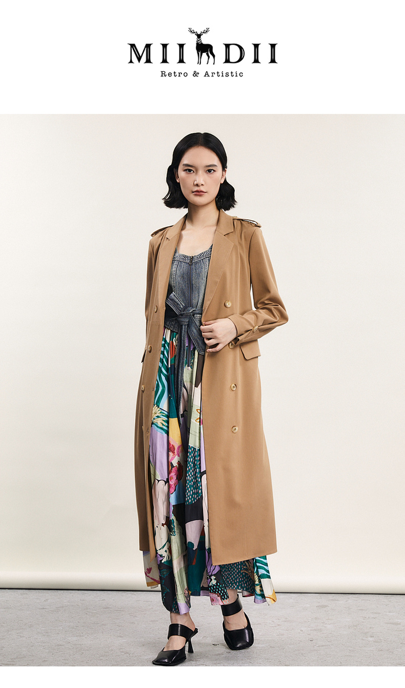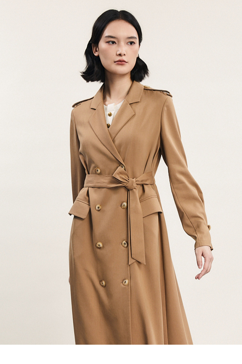 谜底长款风衣女2024春款时尚气质西装领双排扣宽松外套241ME0136