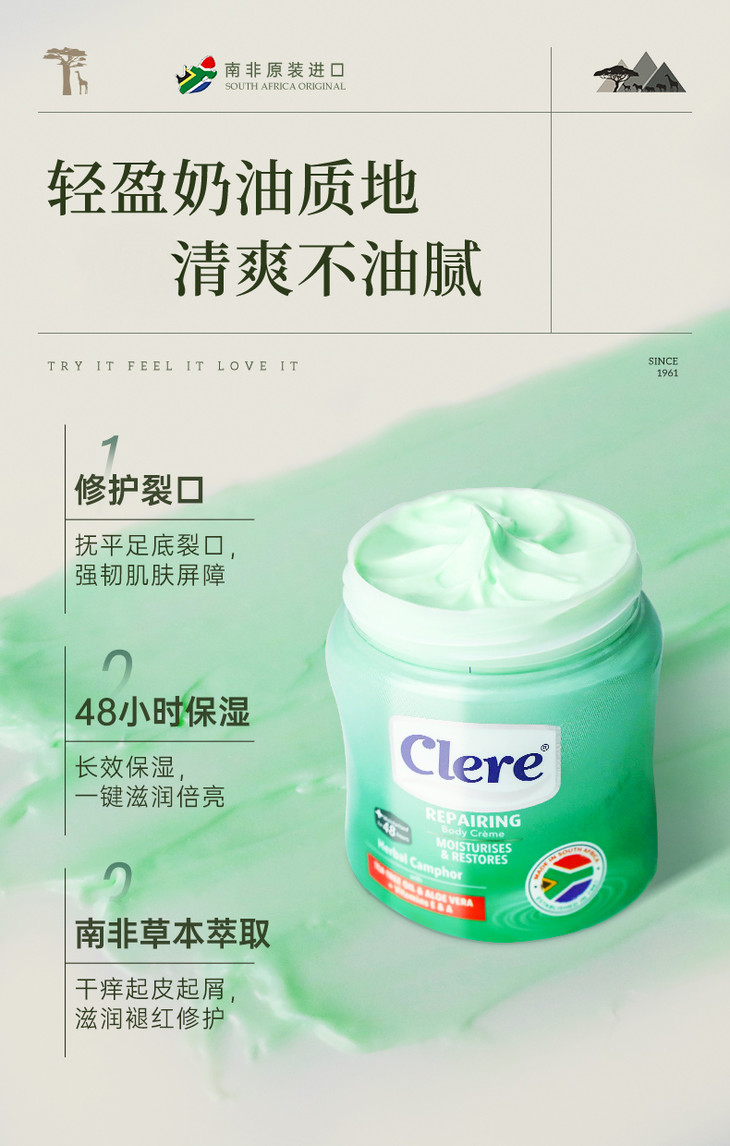 【品名】【赠修脚器】clere克莱锐 香樟乳霜 南非原装进口 无惧干裂 滋润保湿 秋冬必备 大罐装 300ml/瓶+125ml/瓶 【规格】 300ml*1瓶+125ml*1瓶+修脚器*1 【备案编号】 国妆网备进字(沪)2025001766 【产地】南非 【保质期】3年 【发货包装】独立包装 【发货地】安徽 【发货快递】申通 【不发货区域】海南、港澳台 【补邮费地区】新疆、西藏、甘肃、青海、宁夏、内蒙古+10元/单 【发货时效】48-72小时,周末节假日顺延 |