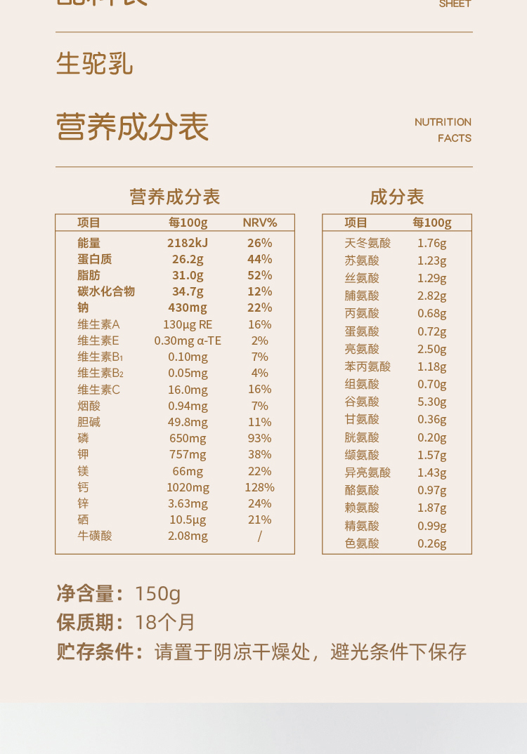 【自营】英格苏全脂驼乳粉 15g*10条 NM