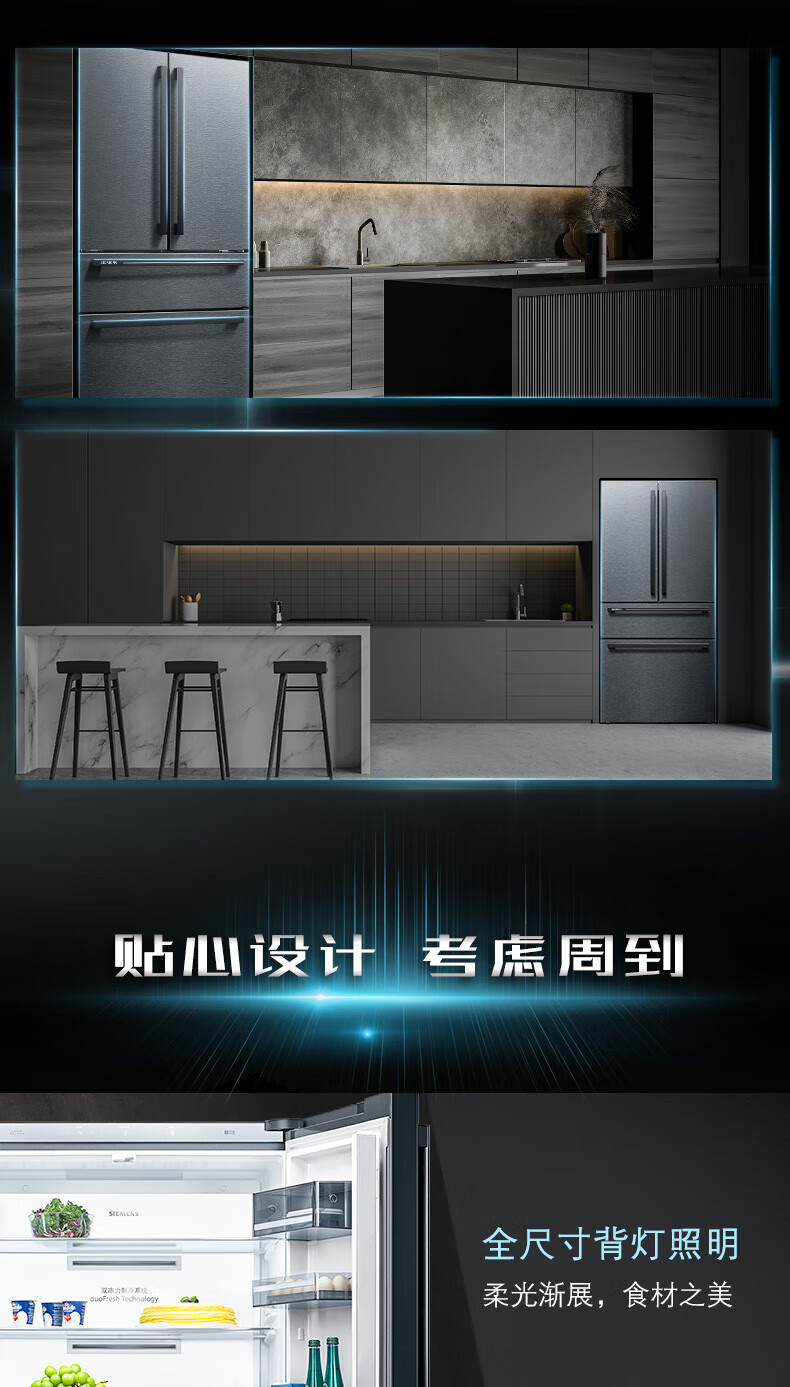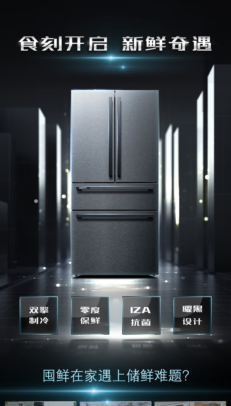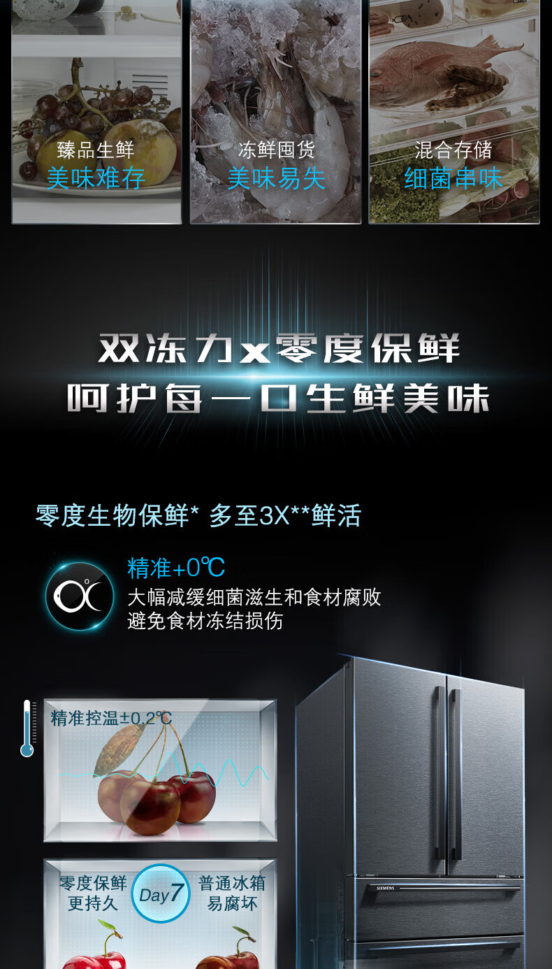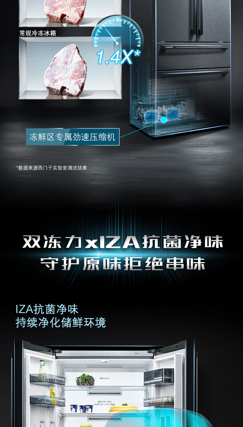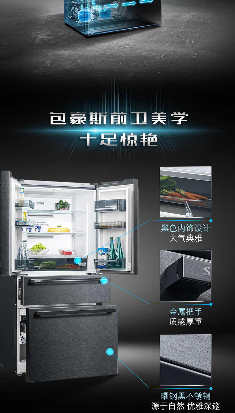 西门子(SIEMENS)【重磅新品】602L法式多门冰箱 零度生物保鲜抗菌净味 双变频双循环不串味 双制冷系统 KF97JPV50C 【曜钢黑 】KF97JPV50C