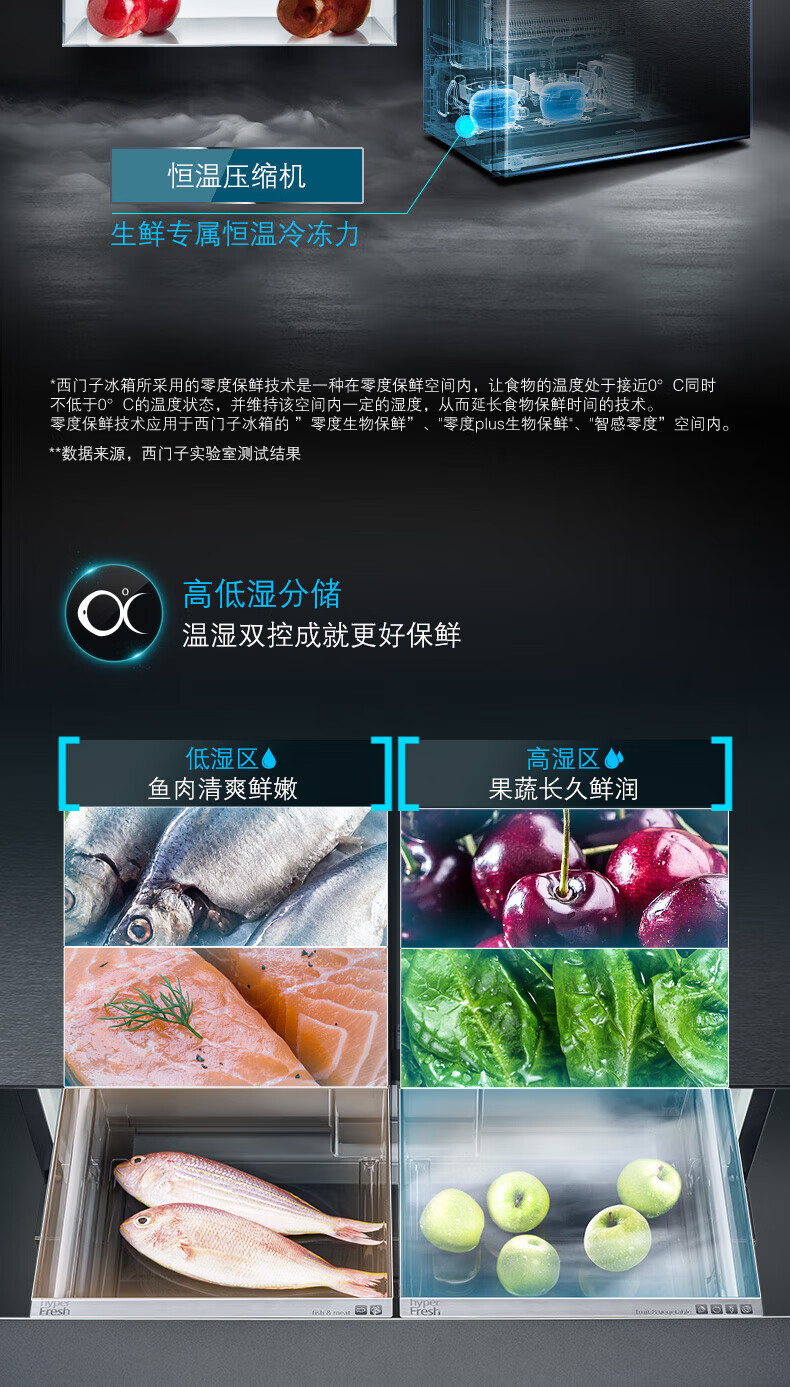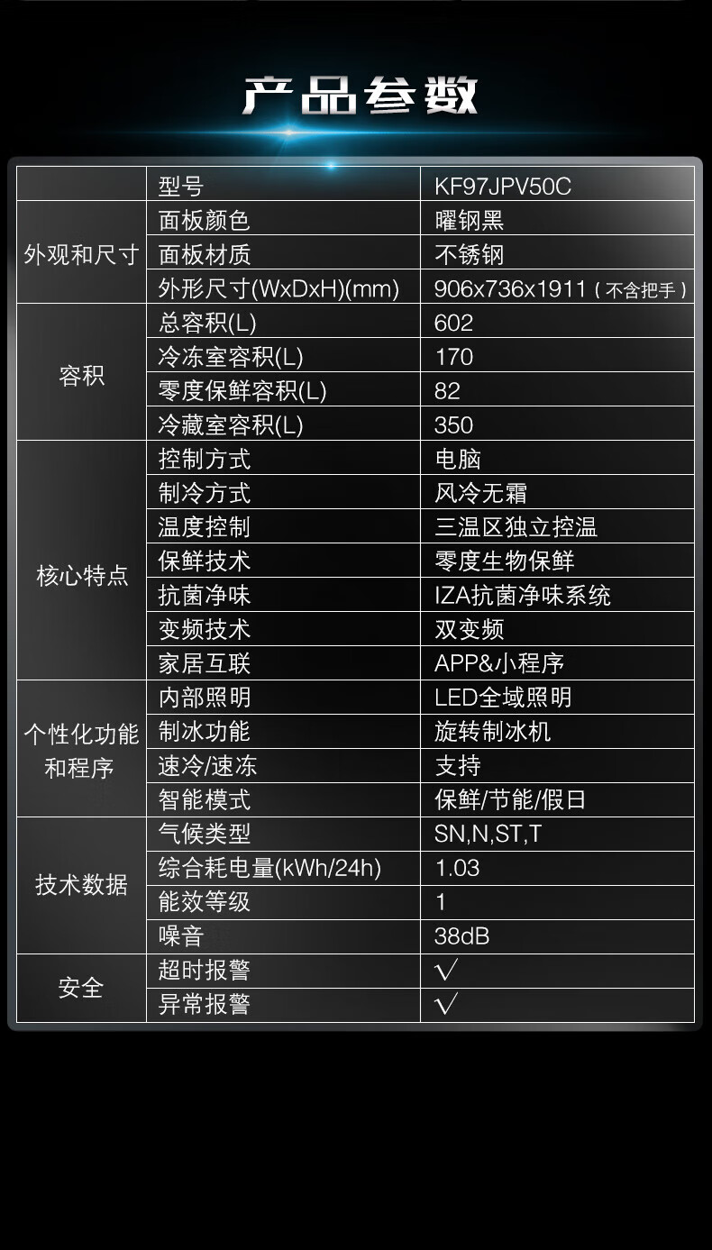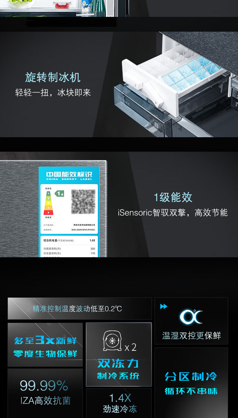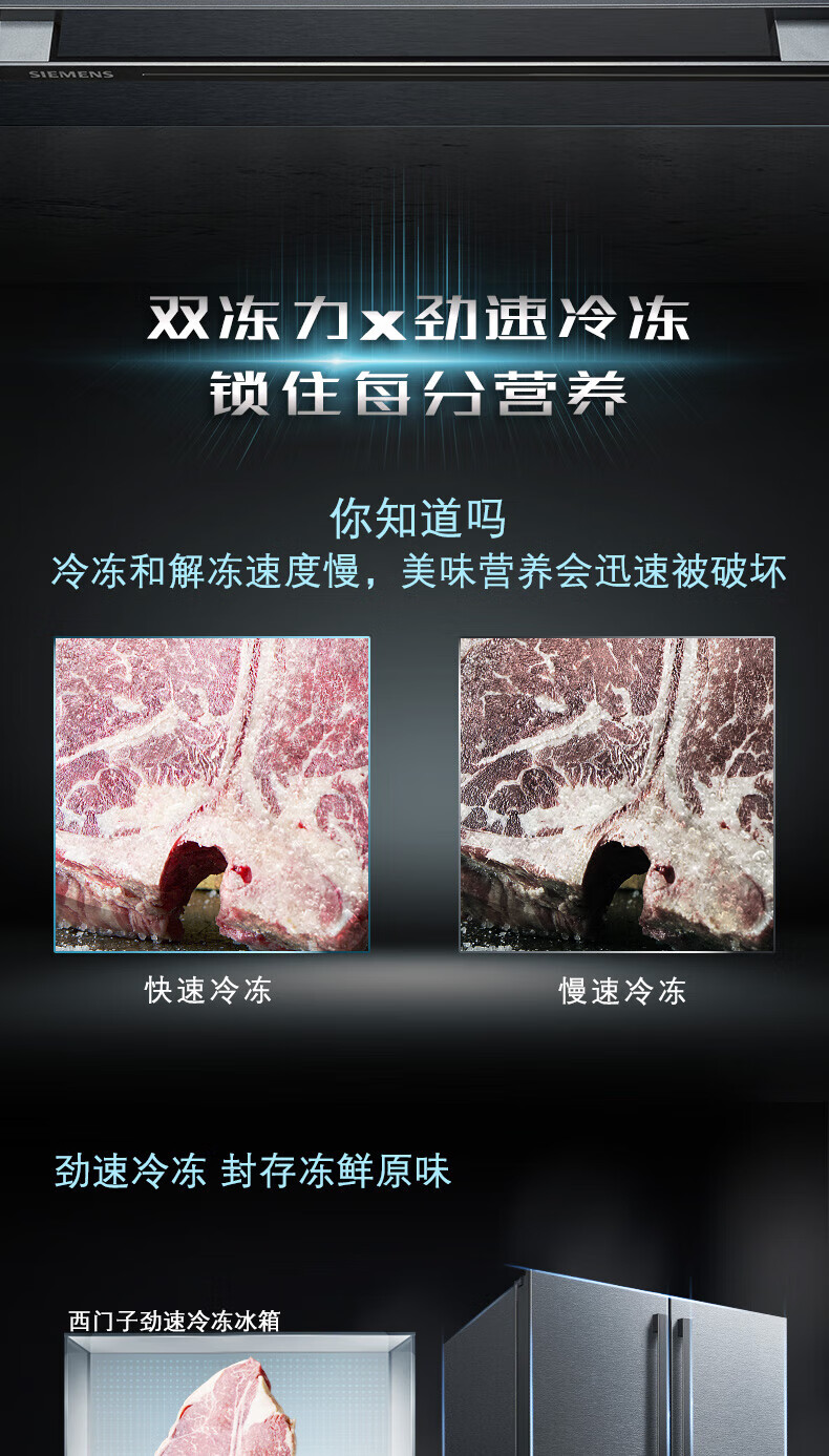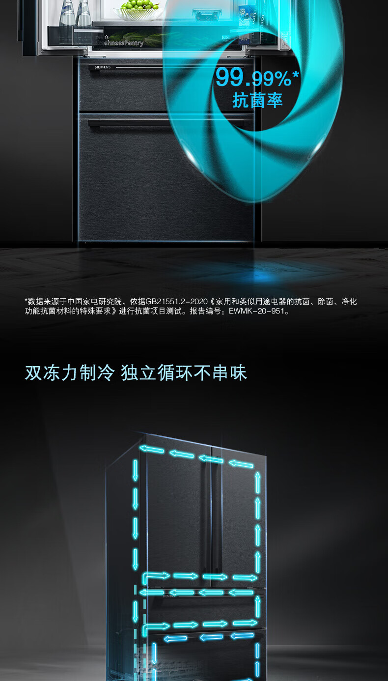 西门子(SIEMENS)【重磅新品】602L法式多门冰箱 零度生物保鲜抗菌净味 双变频双循环不串味 双制冷系统 KF97JPV50C 【曜钢黑 】KF97JPV50C